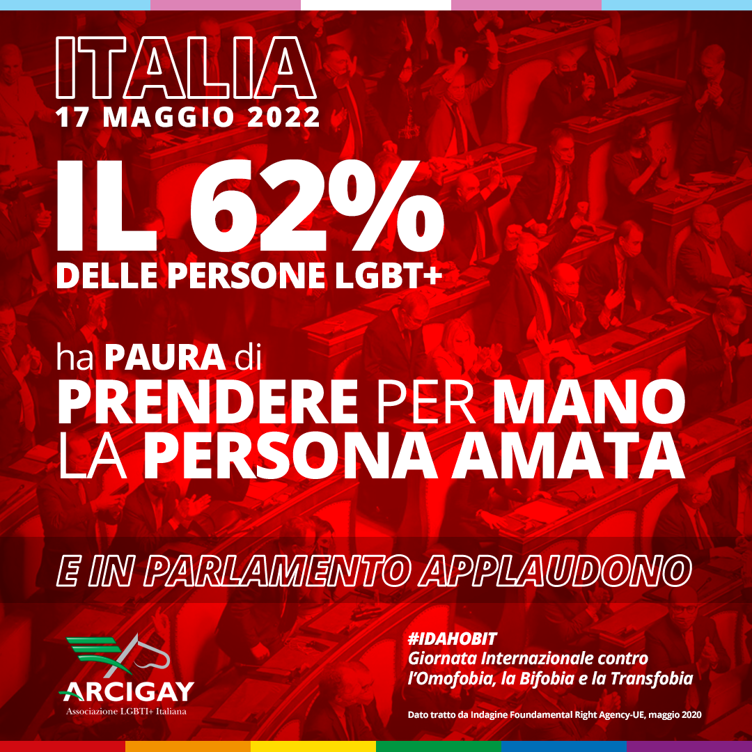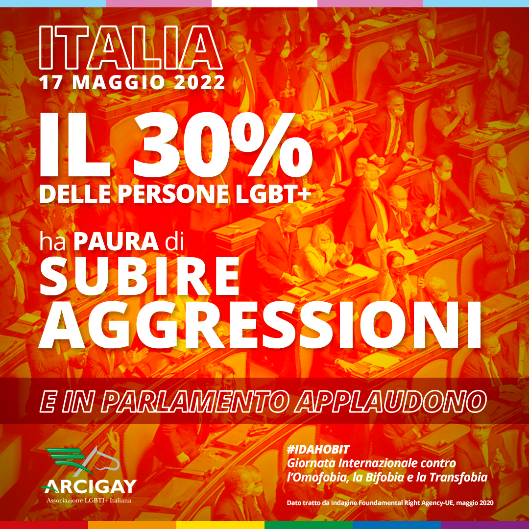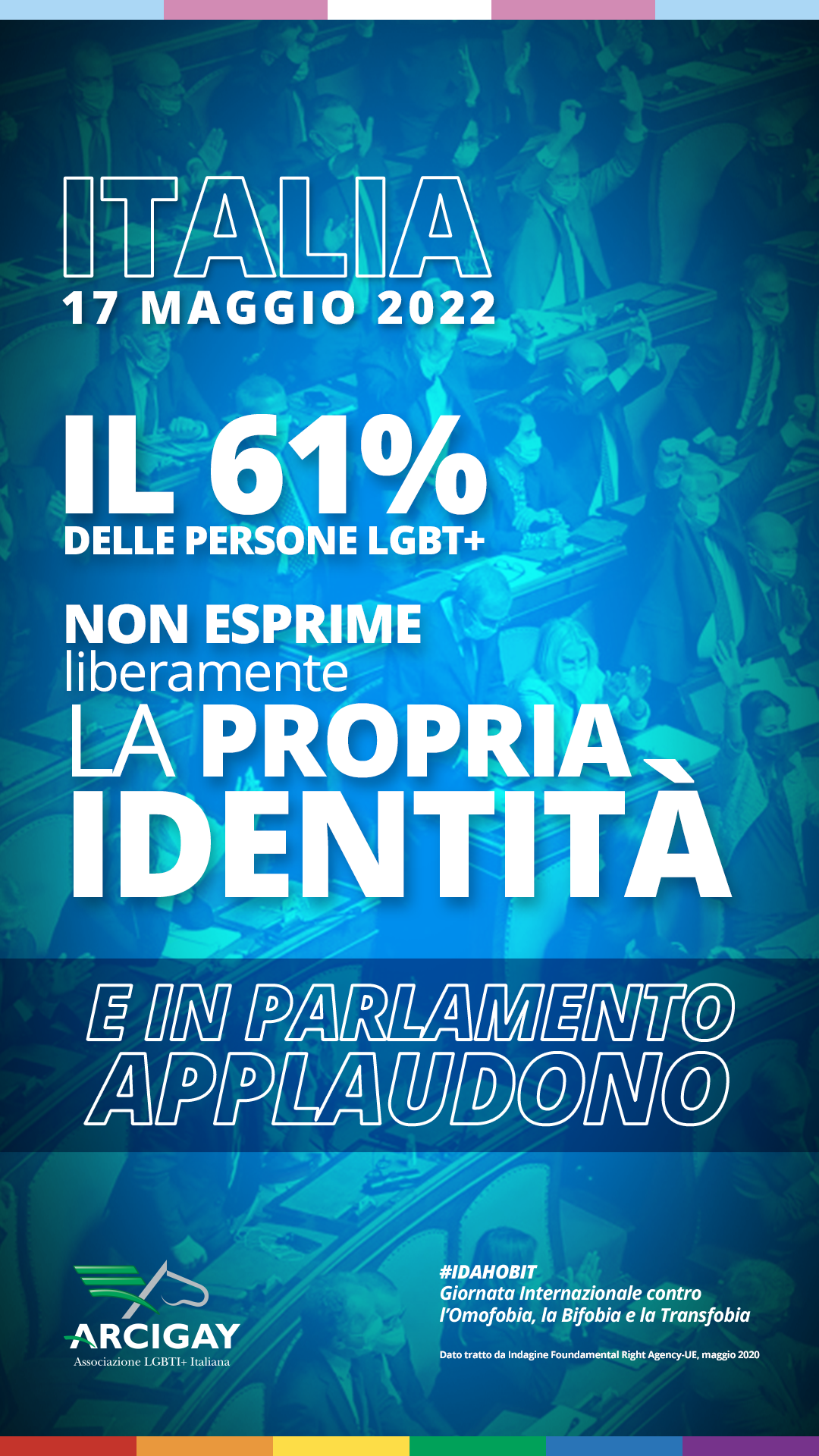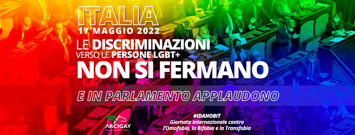 [:it]“E IN PARLAMENTO APPLAUDONO”, recita il claim della campagna realizzata da Arcigay in occasione del 17 maggio, Giornata Internazionale contro omofobia, lesbofobia, transfobia, bifobia, afobia.
