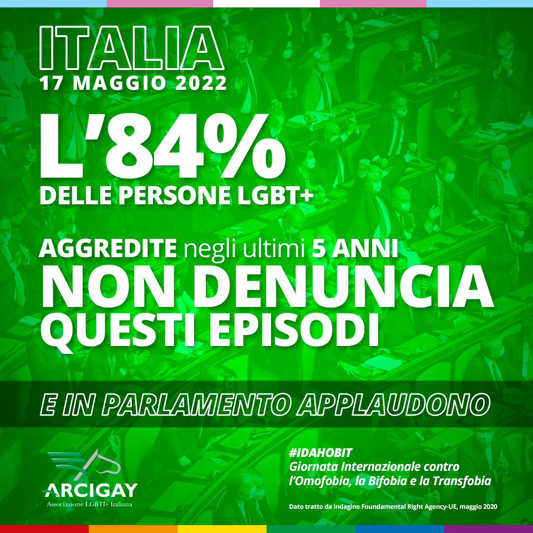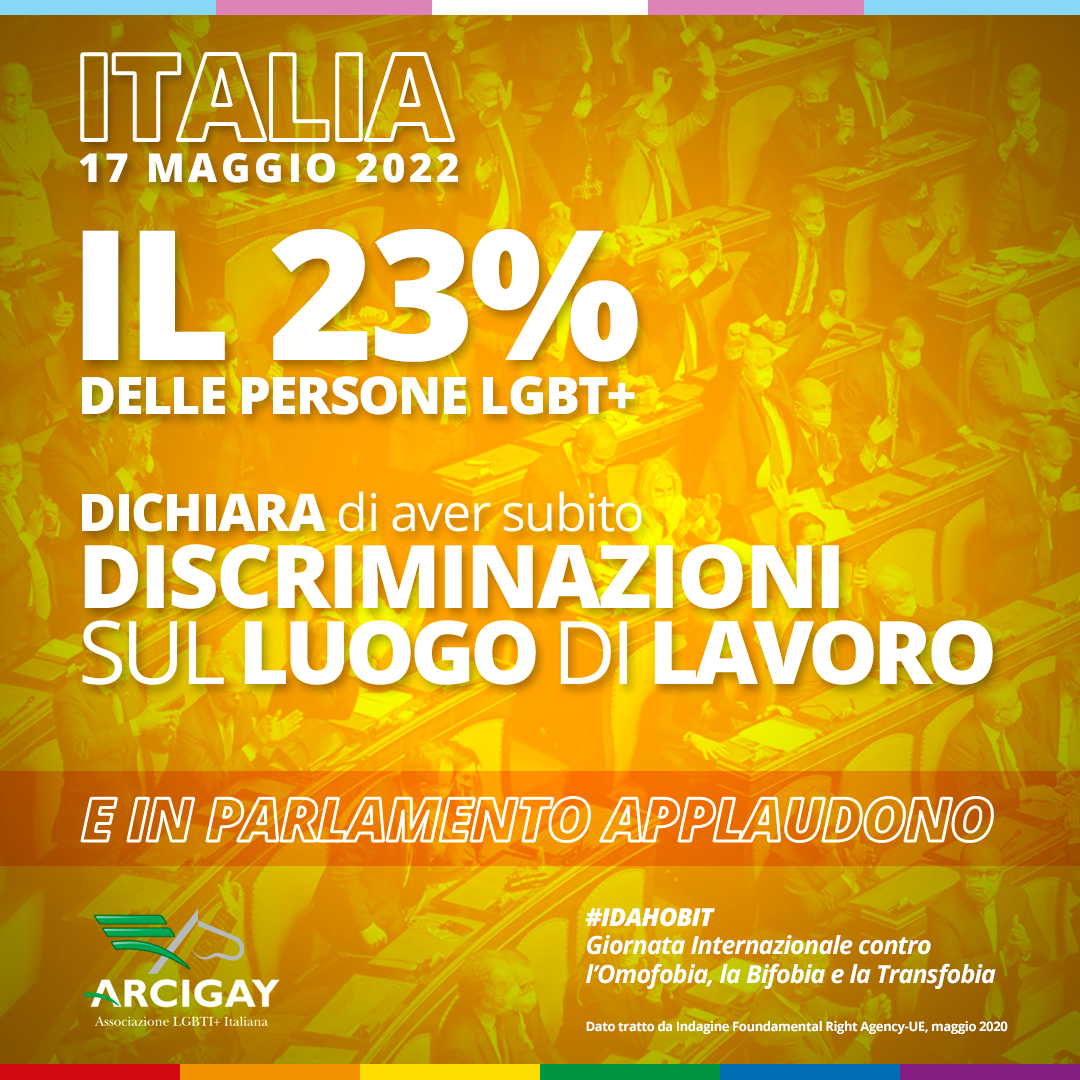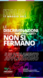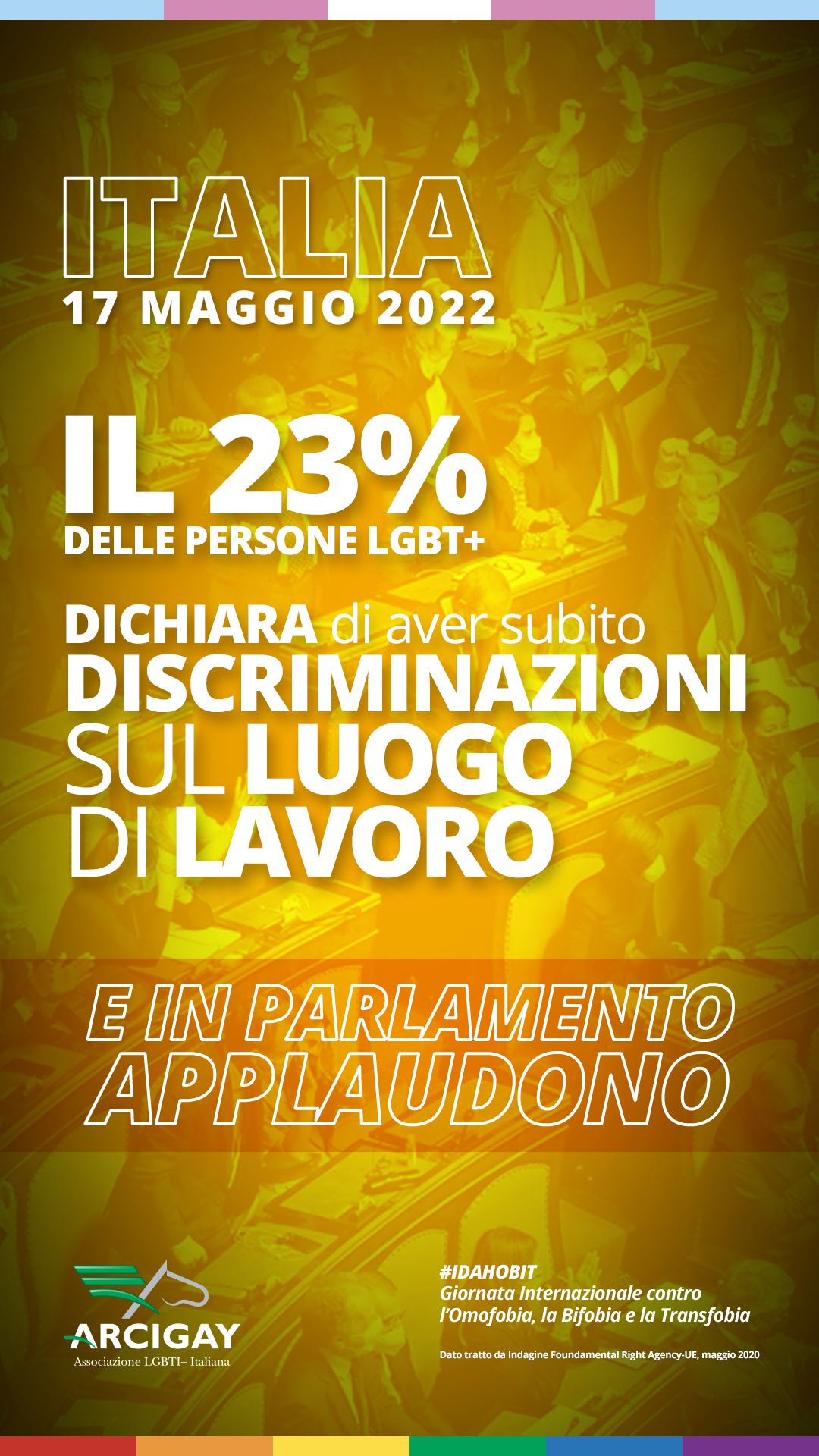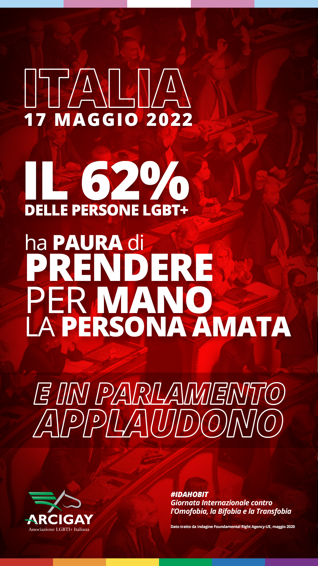 [:it]“E IN PARLAMENTO APPLAUDONO”, recita il claim della campagna realizzata da Arcigay in occasione del 17 maggio, Giornata Internazionale contro omofobia, lesbofobia, transfobia, bifobia, afobia.