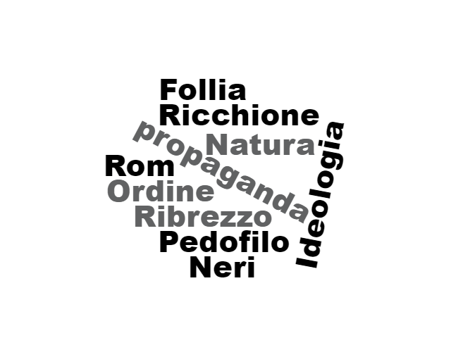 Un totale di 5.189 tweet esaminati che ci hanno permesso di effettuare una serie di considerazione basate sui dati: 1) i messaggi contenenti odio si possono dividere in tre cluster: mondo dello spettacolo, dibattito pubblico e attualità, diritti e temi etici 2) Le parole più ricorrenti nei messaggi negativi sono: ricchione, propaganda, ordine, natura, quelle più ricorrenti nei messaggi positivi sono: cittadini, gruppo, associazioni, sociali, nei messaggi dubbi: privilegio, battuta, scherzo, opinione 3) I tweet più polarizzanti, ovvero quelli in cui i valutatori sono stati maggiormente in disaccordo camuffano le parole di odio con intenti sarcastici, 4) 1 persona su 10 esprime posizioni discriminatorie quando tratta argomenti LGBTI, 5) 4 persone su 10 esprimono posizioni ambigue, almeno nella metà dei casi attribuibili ad un linguaggio ironico nella forma, offensivo negli intenti.