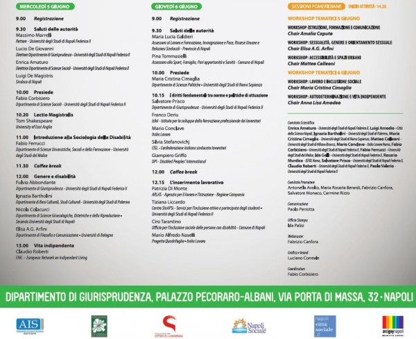 Comitato promotore e Segreteria amministrativa: Antonella Avolio, Maria Rosaria Berardi, Fabrizio Canfora, Salvatore Monaco, Carmine Rizzo. Comitato scientifico: Enrica Amaturo (Università degli Studi di Napoli Federico II), Luigi Amodio (Città della Scienza Napoli), Ignazia Bartolini (Università degli Studi di Palermo), Maria Cristina Cimaglia (Università degli Studi di Roma Sapienza), Matteo Colleoni (Università degli Studi di Milano Bicocca), Mario Conclave (Italia Lavoro Roma), Fabio Corbisiero (Università degli Studi di Napoli Federico II), Fabio Ferrucci (Università degli Studi del Molise), Ida Galli (Università degli Studi di NApoli Federico II), Rosario Murdica (Isfol Roma), Salvatore Prisco (Università degli Studi di Napoli Federico II), Claudio Roberti (Università degli Studi di Napoli Federico II),Paolo Valerio (Università degli Studi di Napoli Federico II).