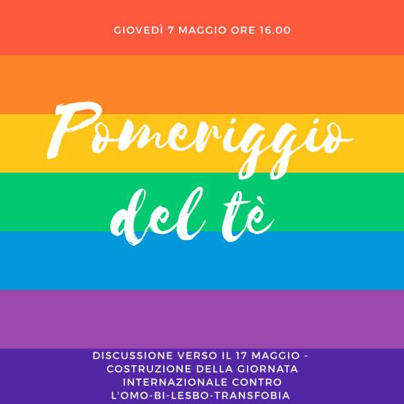 In previsione del 17 Maggio, Giornata Internazionale contro L’Omo-Bi-Lesbo-Transfobia, abbiamo pensato di organizzare un “Giovedì del Tè”