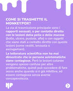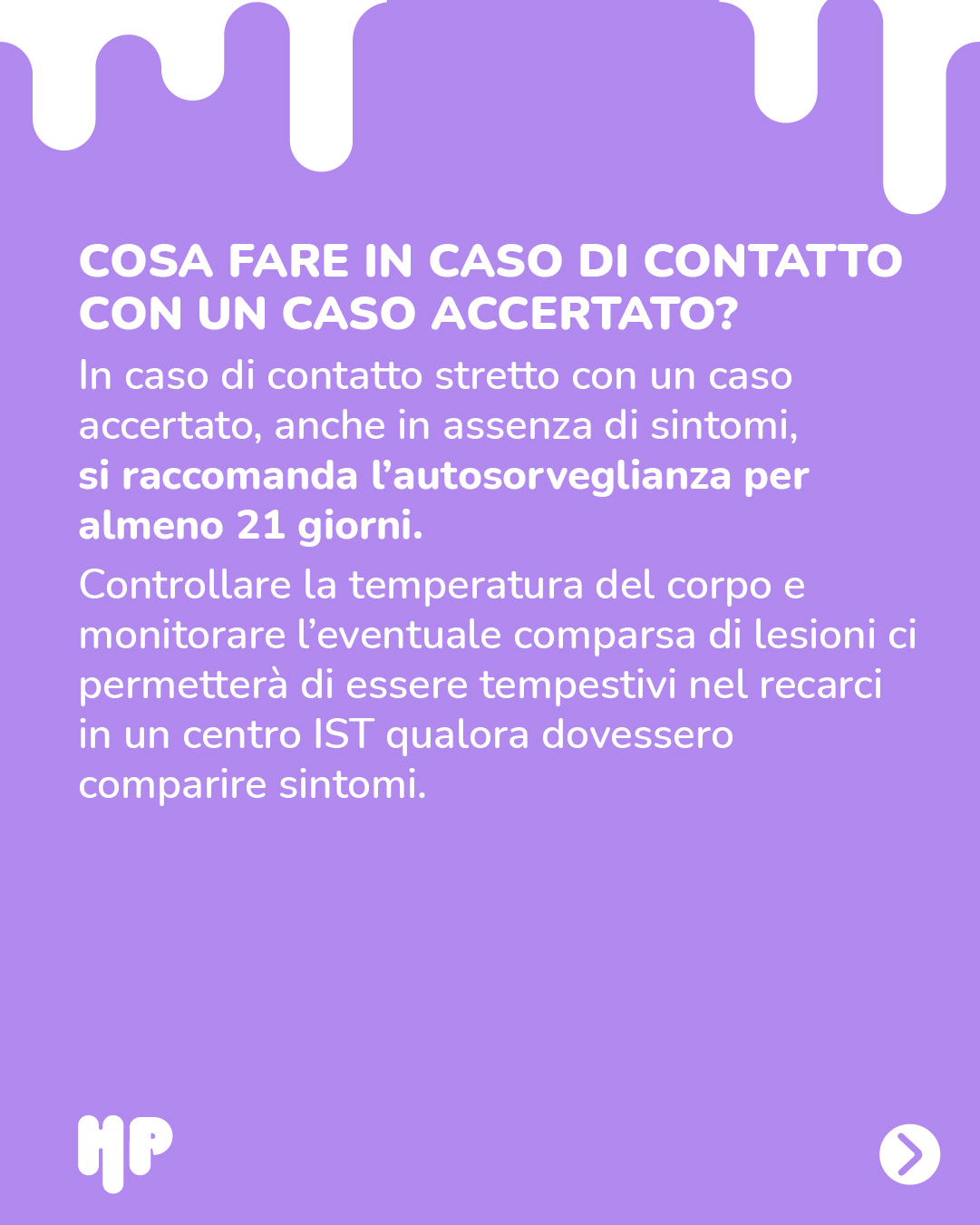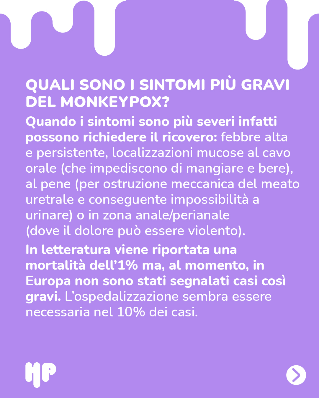 L’infezione nella maggior parte dei casi passa spontaneamente nel giro di qualche giorno e non desta particolari preoccupazioni, solo in rari casi ha sintomi più severi che prevedono qualche giorno di ricovero. Questo non deve indurre a abbassare la guardia perché il virus è comunque contagioso, si sta diffondendo in fretta e si trasmette per contatto diretto, in particolare attraverso contatti sessuali, mediante l’utilizzo di oggetti contaminati (lenzuola, vestiti, asciugamani), oppure il contatto prolungato faccia a faccia (attraverso droplets respiratori).