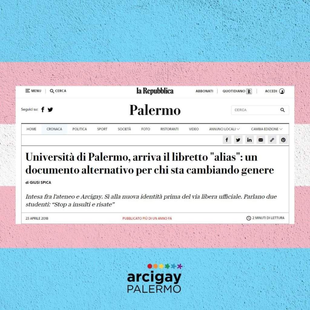 Auspichiamo che l’Università degli Studi di Palermo si adegui al più presto alle linee guida della Conferenza Nazionale degli Organismi di Parità delle Università italiane, così come hanno fatto e stanno facendo sempre più Università italiane, nel rispetto dell’autodeterminazione, verso una completa depatologizzazione delle identità trans.
