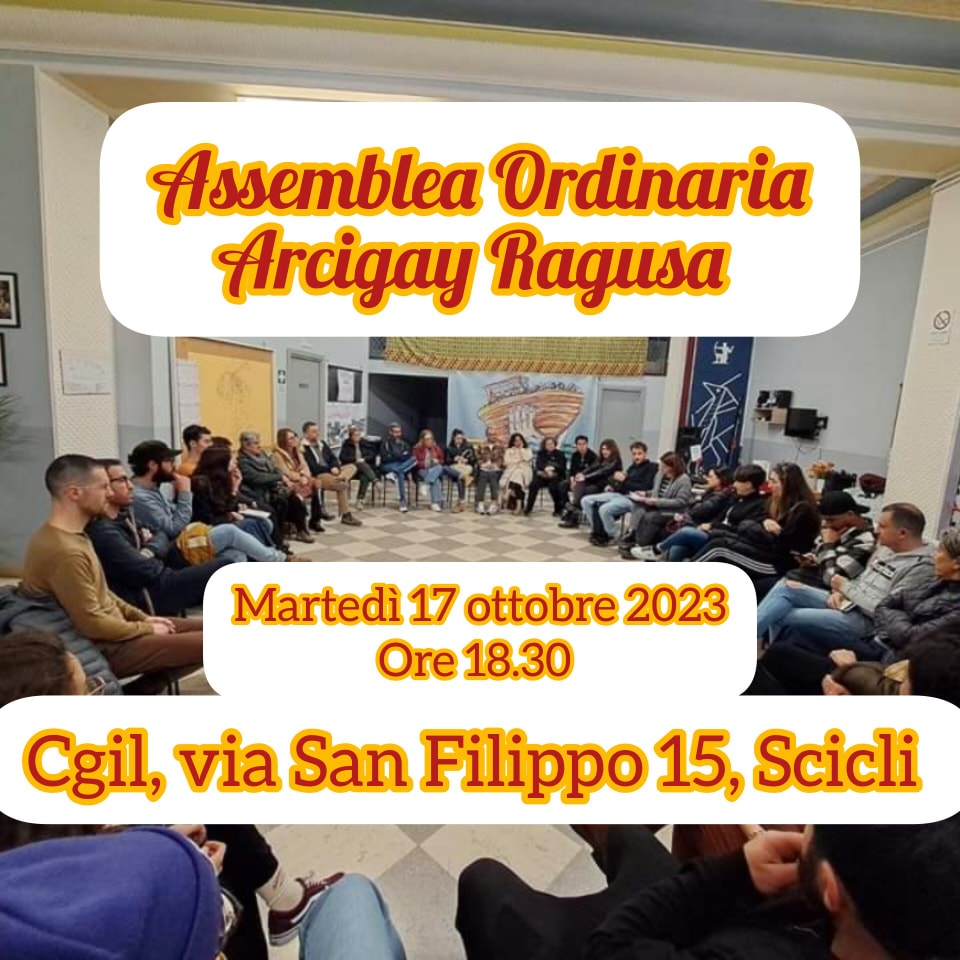 È convocata l’assemblea delle persone associate dell’associazione Arcigay Ragusa presso la sede di Cgil, via San Filippo 15, Scicli.
