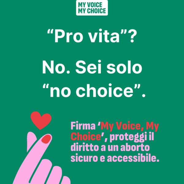 In questo momento, oltre 20 milioni di persone nell’Unione Europea sono private del diritto fondamentale di prendere decisioni sul proprio corpo, a causa della mancanza di accesso all’aborto. Tutto ciò deve cambiare. Abbiamo lanciato l’Iniziativa dei Cittadini Europei “My Voice My Choice” per chiedere che l’UE garantisca un accesso sicuro e gratuito all’aborto per tutte le persone.