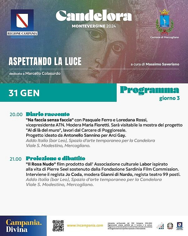 Articolo tratto da https://www.arcigaynapoli.org/2024/01/30/edizione-2024-della-candelora-di-montevergine-aspettando-la-luce-manifesto-politico-e-sociale-per-i-diritti-delle-persone-lgbtqi/?utm_source=rss&utm_medium=rss&utm_campaign=edizione-2024-della-candelora-di-montevergine-aspettando-la-luce-manifesto-politico-e-sociale-per-i-diritti-delle-persone-lgbtqi