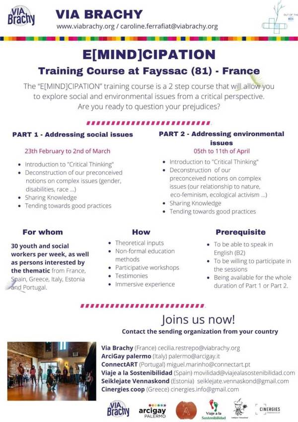 Via Brachy, partner francese di Arcigay Palermo, ospita due training Erasmus a Fayssac, presso Tolosa, a ognuno dei quali parteciperanno 30 giovani provenienti da 6 diversi paesi UE. Entrambi i training puntano allo sviluppo del pensiero critico.