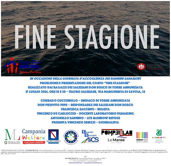 Una serata di festa per accogliere i bambini Saharawi che trascorreranno l’estate insieme ai bambini torresi. È questa l’anima dell’evento che si terrà mercoledì 17 luglio nel teatro dell’oratorio salesiani Don Bosco di Torre Annunziata. Un evento dedicato ai piccoli bambini africani che la comunità salesiana si appresta ad accogliere e che vedrà protagonisti anche i loro coetanei torresi. Sarà, infatti, quella l’occasione, nelle manifestazioni dedicate ai piccoli, per presentare il cortometraggio “Fine stagione” con protagonisti proprio i piccoli oplontini. Grazie al progetto Rainbow Refuge, accoglienza e inclusività andranno a braccetto con la proiezione e il dibattito successivo affidato alle associazioni protagoniste della campagna di sensibilizzazione sui temi delle discriminazioni e dell’integrazione. Il cortometraggio, diretto da Francesca Saccenti, ha come tema le discriminazioni per l’orientamento sessuale ed è interpretato da una gruppo di giovanissimi attori formati dai salesiani. Lo scorso anno i piccoli hanno, infatti, seguito un laboratorio di filmaking con Vincenzo De Carluccio e il risultato del loro percorso è racchiuso nell’opera realizzata insieme. Quale occasione migliore della giornata dedicata all’accoglienza dei loro coetanei che arrivano dall’altra parte del mare. A spiegare gli obiettivi del progetto Rainbow Refuge ci sarà il referente dell’Ats, Antonello Sannino. Con lui parteciperà alla presentazione anche la regista Francesca Saccenti, insieme al padrone di casa Don Piervito Pepe, responsabile dei Salesiani Don Bosco, e al docente Vincenzo De Carluccio. Presente anche il sindaco di Torre Annunziata, Corrado Cuccurullo, per i saluti di rito. La presentazione del corto sarà realizzata dal giornalista Vincenzo Sbrizzi. Successivamente la serata proseguirà con un convegno a cui parteciperanno diverse realtà locali impegnate nella promozione dell’accoglienza e della pace.