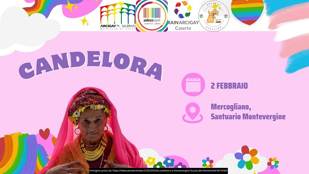 La motivazione è da ricercarsi in una narrazione orale – in realtà molto tardiva perché risalente al secolo scorso – secondo la quale nel 1256 la Madonna di Montevergine avrebbe miracolosamente liberato due amanti omosessuali, legati a un albero tra lastre di ghiaccio. Il giorno dell’intervento prodigioso sarebbe stato appunto il 2 febbraio. Ci saranno le associazioni LGBTQIA+, tanti eventi organizzati sul territorio grazie alla collaborazione con Apple Pie Arcigay Avellino. Da Napoli bus organizzati dall’Associazione Trans Napoli (ATN). Annunciate le presenze di Vladimir Luxuria, Alessandro Cecchi Paone e Monica Cirinnà.