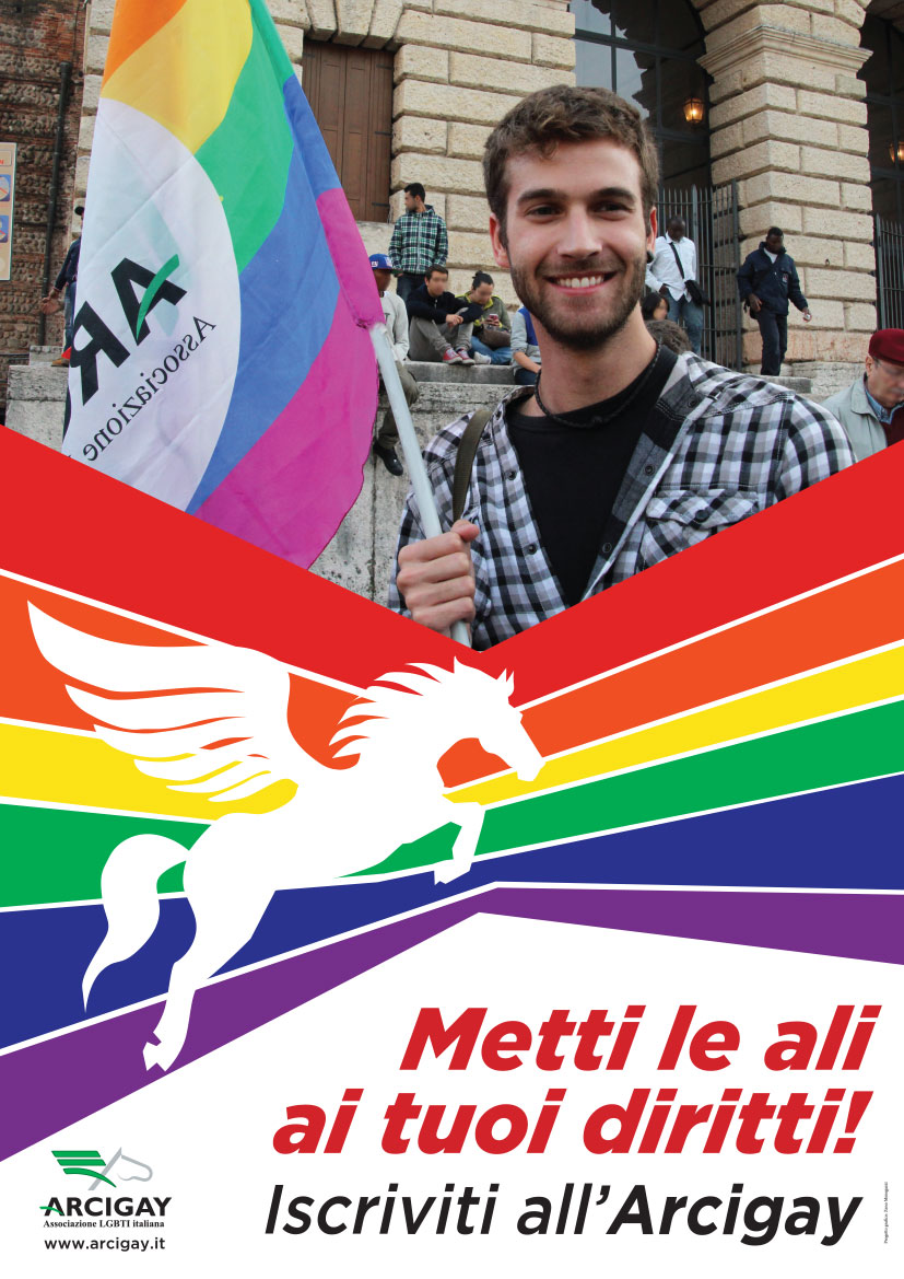 Le grafiche della campagna “Metti le ali ai tuoi diritti” e della tessera Arcigay sono state realizzate da Zeno Menegazzi: a lui va il nostro più sentito ringraziamento.