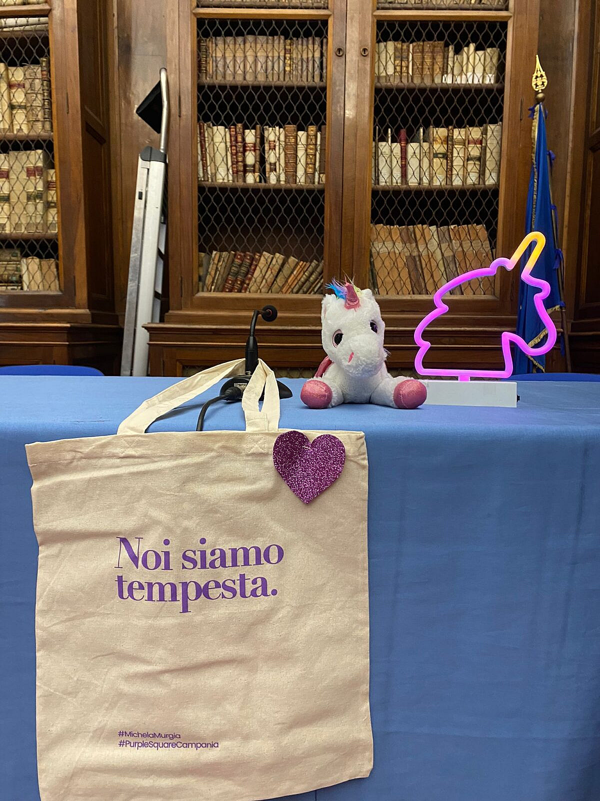 L’evento, perfettamente riuscito, è stato organizzato da Purple Square, rete di piazze viola ispirata a Michela Murgia, comunità virtuale e fisica, un movimento organizzatasi per portare avanti i valori civili, culturali e politici della scrittrice.