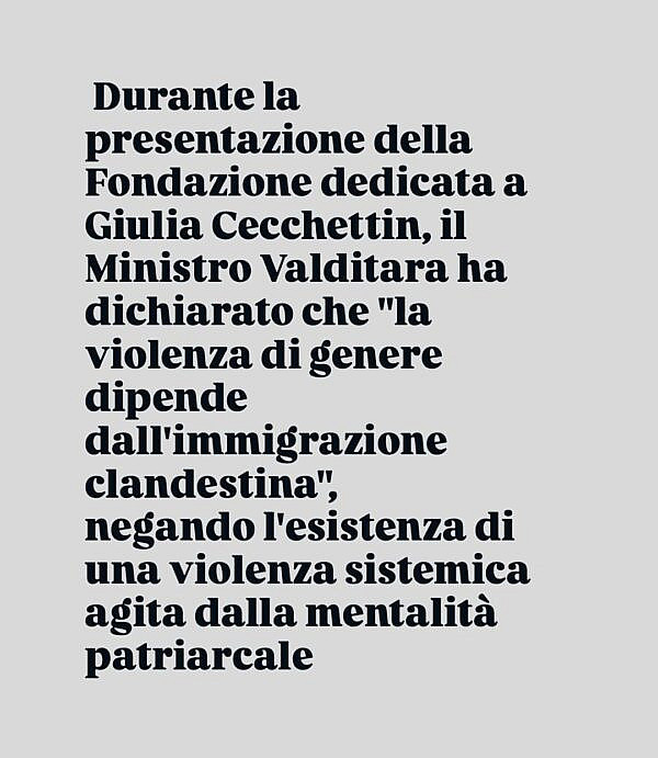 Queste dichiarazioni, non solo vengono smentite dai dati ma rappresentano un insulto alla memoria di Giulia e di tutte le persone che hanno perso la vita a causa di un sistema patriarcale che continua a mietere vittime.