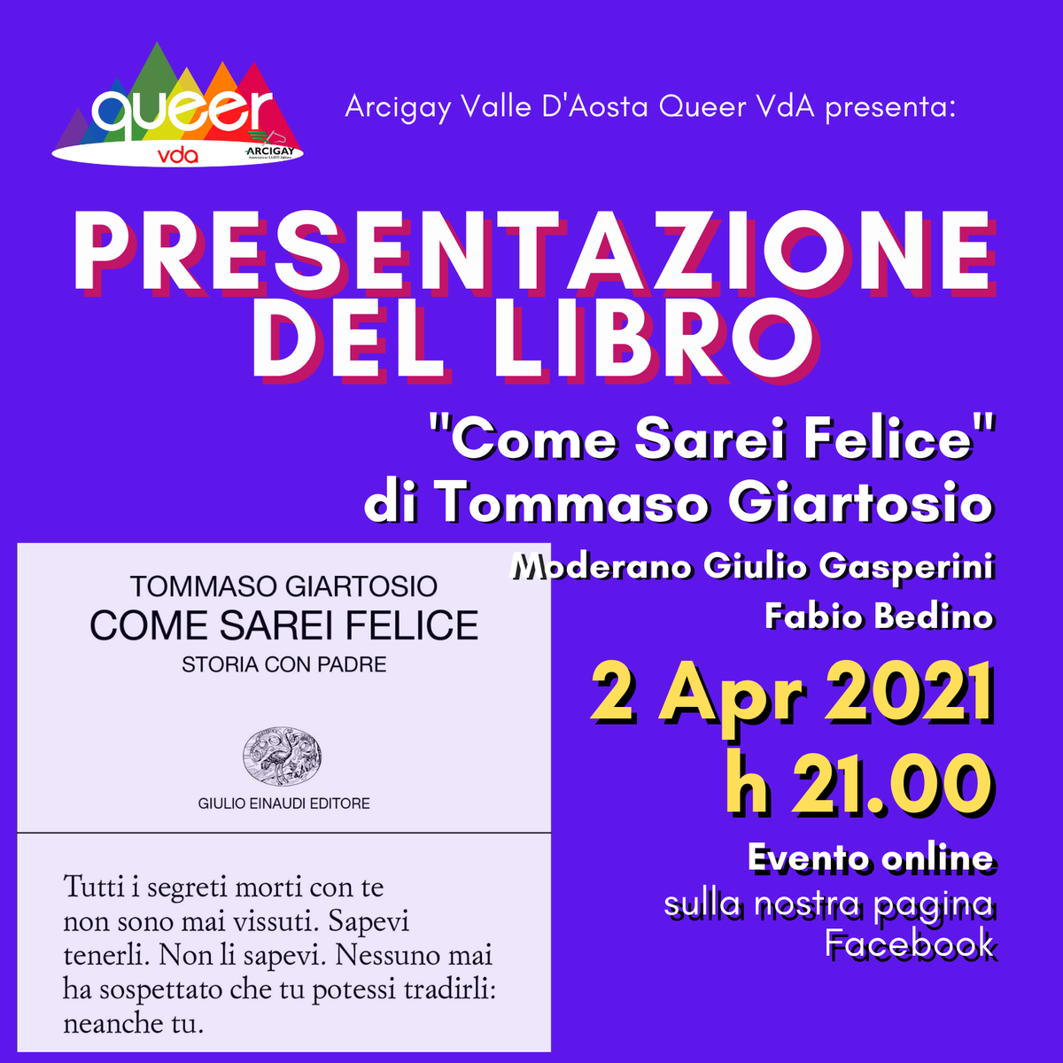 L’evento può essere seguito gratuitamente in streaming sulla nostra pagina facebook (https://www.facebook.com/arcigayqueervda).