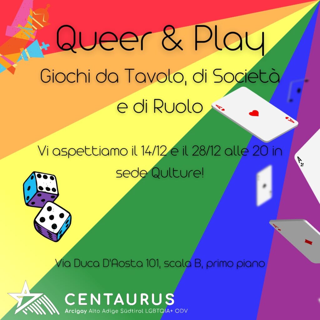 Dopo un bellissdimo primo mese il Queer & Play riparte il 14 e il 28 Dicembre in sede Qulture alle 20, per giochi da tavolo e bella compagnia! Vi aspettiamo! 🏳‍🌈 🏳‍⚧