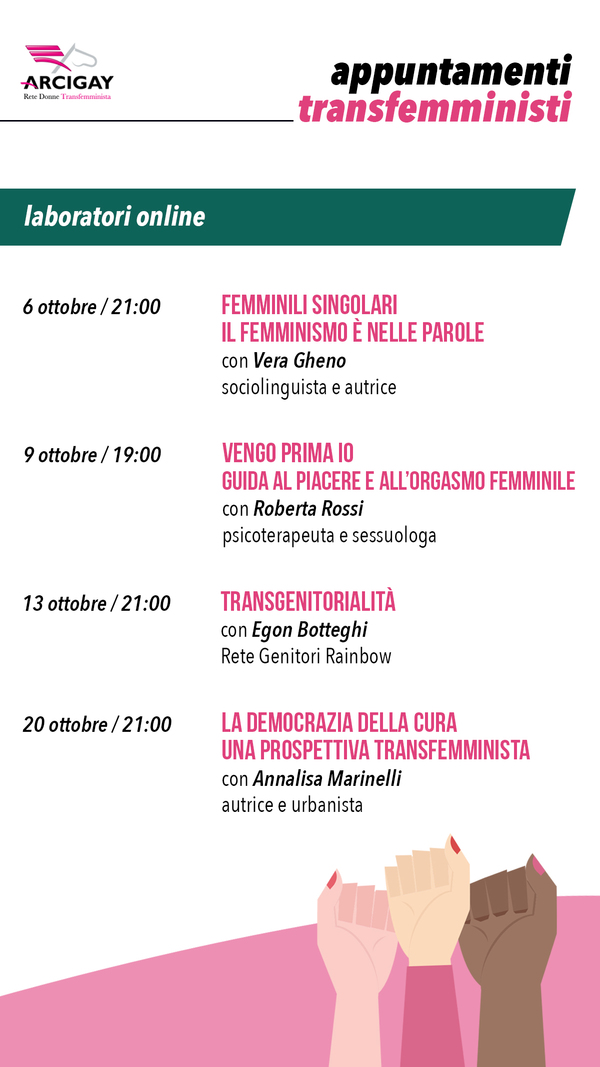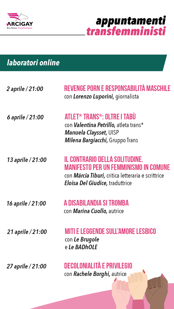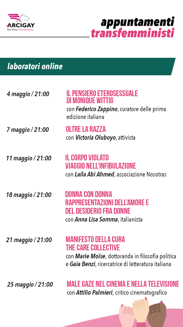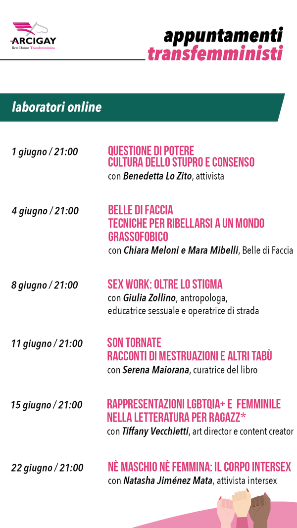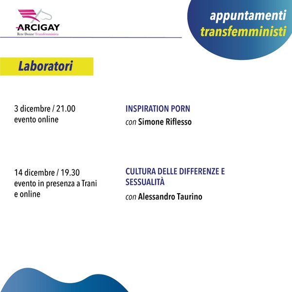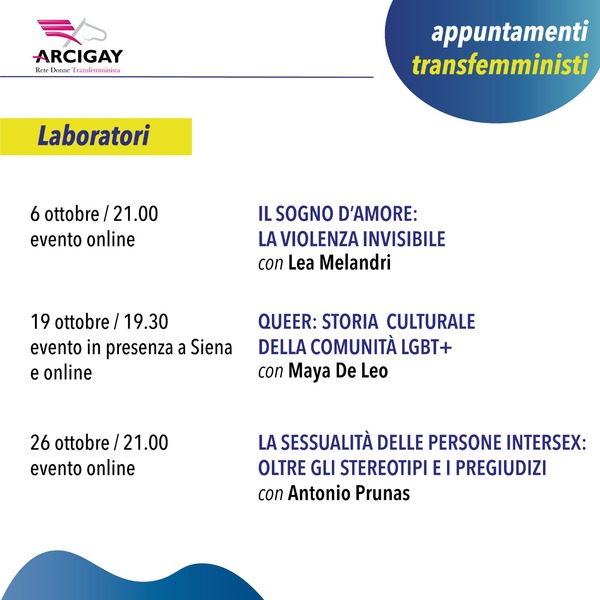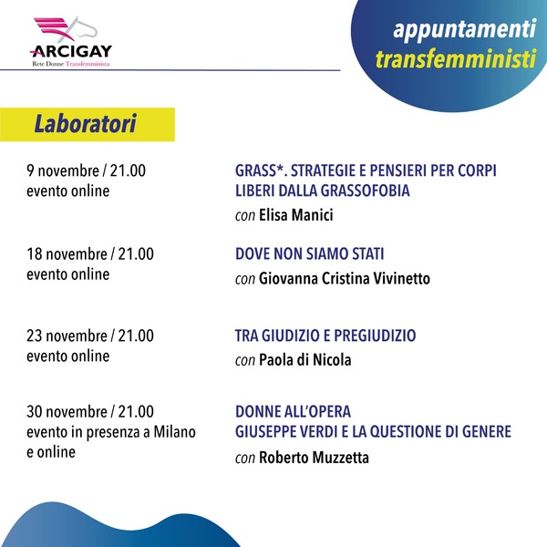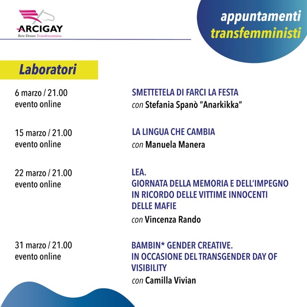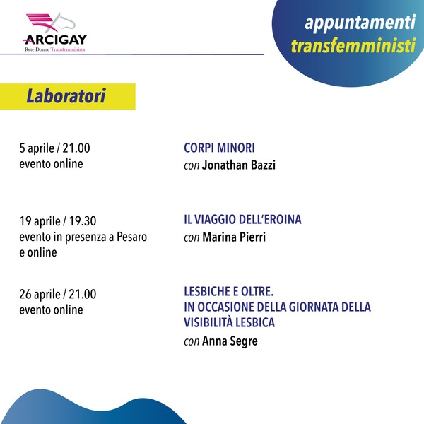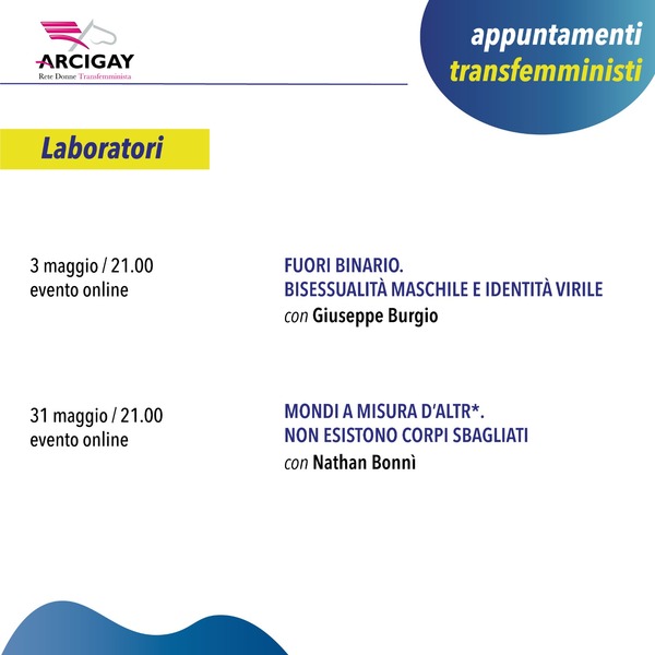 Alcuni laboratori saranno trasmessi anche in diretta streaming sul nostro canale YouTube. Scopri quali qui: arcigay.it/dirette