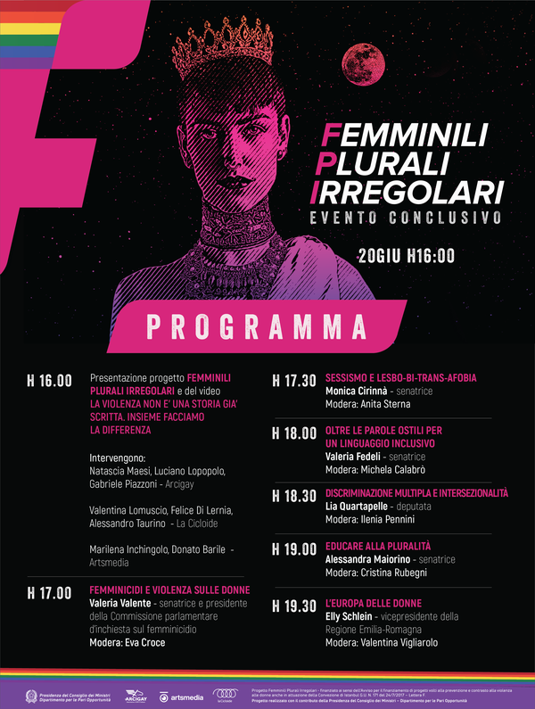 Michela Murgia | Stefano Ciccone | Rachele Borghi| Irene Facheris | Vera Gheno | Alithia Maltese | Federico Zappino | Maura Gancitano| Liana Borghi| Francesca Cutrupi | Marilena Grassadonia | Giulia Blasi | Albalisa Sampieri | Samantha Tufariello | Jennifer Guerra | Valeria Nicoli | Laura Fontanella | Ethan Bonali | Federica Di Martino | Ilaria Giovannelli | Giulia Massai | Chiara Sfregola | Maximiliano Ulivieri | Chiara Piccoli | Federica Cozzella | Christian Leonardo Cristalli| | Frad | Bproud | Orgoglio Bisessuale | Monica J. Romano | Polycarenze | Insieme in rete | Lilia Giugni | Sofia Righetti | Gianmarco Capogna | Lynda Demetto | Vera Navarria | Lorenzo Gasparrini | Michela Balocchi | Marta Panighel | Violeta Benini | Slavina | Liana Borghi | Marie Moïse | Carla Fronteddu | Laura Cima | Carolina Vesce | Margherita Graglia | Annalisa Zabonati | Selene Zorzi | Vera Gheno | Egon Botteghi | Annalisa Marinelli | Lorenzo Bernini | Giovanna Vingelli | Valentina Calderone | Daniela Lurdes Falanga | Antonia Caruso | Diana Vezzelli | Saida Elgtay | Rahel Sereke| Francesca Vecchioni| Margherita Picchi | Rosanna Maryam Sirignano | Marisa Iannucci | Fiorenzo Gimelli | Paola Maria Lussoglio | Maria Chiara e Elena Paolini Witty Wheels | Alessandro Taurino | Benedetta Pintus | Graziella Priulla | Aurelio Castro | Maura Gancitano | Marta Palvarini |Filosofemme | Valentina Petrillo | Márcia Tiburi | Eloisa del Giudice | Federica Formato | Anna Lisa Somma | Marina Cuollo | Le Brugole | Le BADhOLE | Rachele Borghi | Cristina Obber | Victoria Oluboyo | Laila Abi Ahmed | Marie Moïse | Gaia Benzi |Attilio Palmieri | Benedetta Lo Zito | Giulia Zollino | Serena Maiorana | Tiffany | Natasha Jiménez Mata | Manuela Claysset | Milena Bargiacchi | Lorenzo Luporini |Lea Melandri | Maya De Leo | Giovanna Cristina Vivinetto | Paola Di Nicola | Antonio Prunas | Elisa Manici | Giovanna Cristina Vivinetto | Roberto Muzzetta | Simone Riflesso | Marcella Corsi | Catalina Curceanu | Federica Castelli | Eugenia Fattori | Anarkikka – Stefania Spanò | Manuela Manera | Vincenza Rando | Jonathan Bazzi | Marina Pierri | Anna Segre