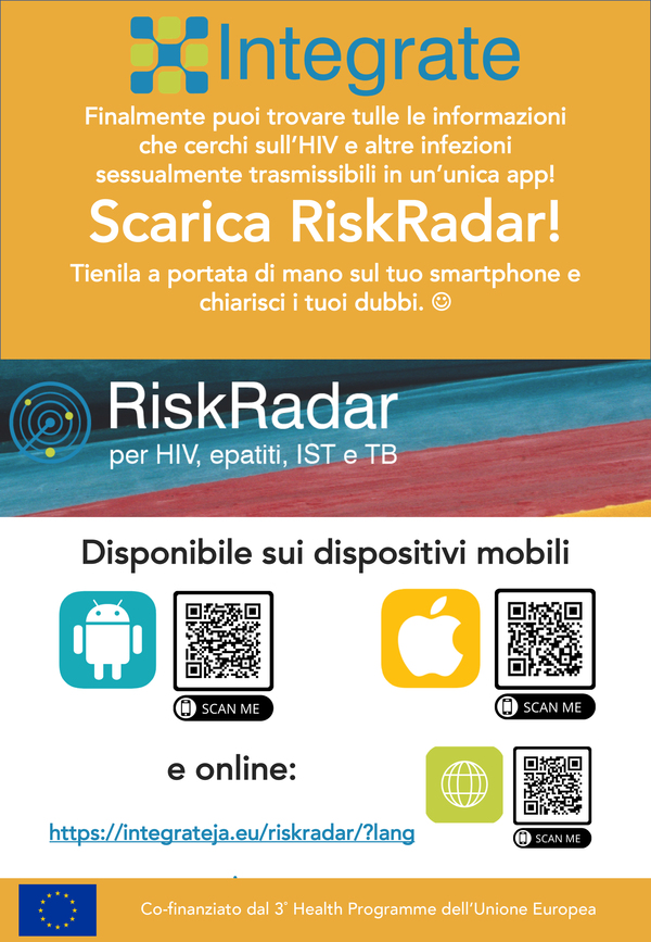 [:it]Arcigay, uno dei partner italiani del progetto europeo Integrate, lancia una nuova app, RiskRadar, che ti aiuterà a trovare facilmente tante informazioni su HIV, epatiti, infezioni sessualmente trasmissibili e tubercolosi – tutto in un’unica app!