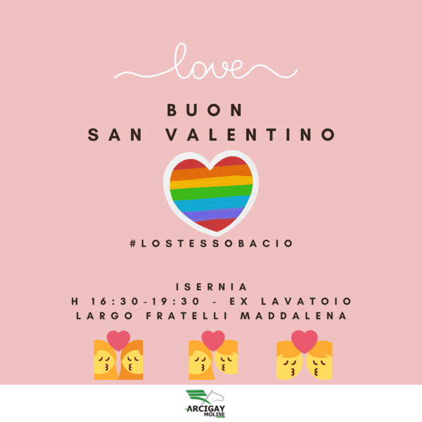 [:it]Al via l’iniziativa #LoStessoBacio in occasione del San Valentino. Il 14 febbraio ad Isernia, presso l’ex Lavatoio in Largo Fratelli Maddalena dalle 16:30 alle 19:30, saranno distribuiti Baci Perugina e cartoline per dimostrare che l’amore è di tutti e tutte, incluse coppie gay e coppie lesbiche. L’iniziativa di distribuzione è giunta al suo decimo anniversario, che più volte negli anni è arrivata in Molise, come in tante altre città d’Italia,continua ad essere fondamentale nel ribadire l’importanza della visibilità dell’amore a 360°. Purtroppo nonostante la legge sulle unioni civili, molte coppie sono ancora costrette a nascondersi per non subire discriminazioni. Con questo evento vogliamo ribadire che l’amore non fa distinzioni.