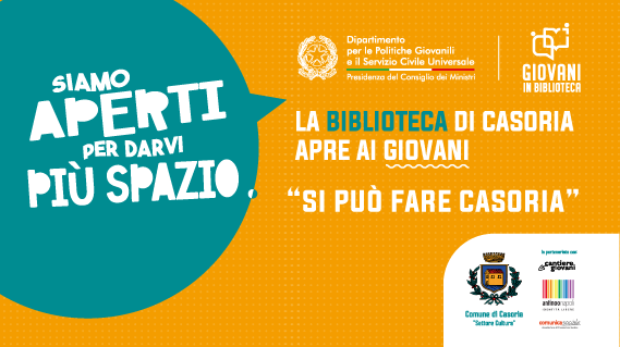 “Si può fare Casoria” è un progetto finanziato dall’ AVVISO PUBBLICO GIOVANI IN BIBLIOTECA del Dipartimento per le Politiche Giovanili e il Servizio Civile Universale della Presidenza del Consiglio dei Ministri finalizzato alla realizzazione di azioni volte a favorire e sostenere la creazione di spazi di aggregazione destinati alle giovani generazioni nei quali promuovere e coordinare attività ludico-ricreative, sociali, educative, culturali e formative, per un corretto utilizzo del tempo libero.