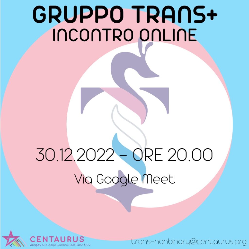 30/12/2022 h. 20.00 meet online. Trans+ Group. https://meet.google.com/yip-zktu-uqi