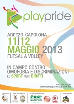 Un torneo di calcio a 5 femminile e un quadrangolare di pallavolo maschile (o mista) aperti a tutte le squadre amatoriali di tutta Italia. Protagonisti della prima edizione di PLAY PRIDE, che si svolgerà domenica 12 maggio negli impianti sportivi del comune di Capolona, saranno quindi le discipline sportive più popolari, con l’obiettivo di farne un appuntamento annuale e sempre più grande per riunire atleti LGBT e non, e gridare con forza tutti insieme STOP OMOFOBIA ! L’evento sportivo sarà preceduto da una tavola rotonda nel pomeriggio di sabato 11 presso i locali della Provincia di Arezzo dal tema “lo sport contro l’omofobia” al quale pateciperanno: un big del mondo sportivo, rappresentanti delle amministrazioni locali, un referente di Arcigay nazionale e un membro nazionale di UISP che presenterà la campagna di sensibilizzazione “Football for Equalty” contro l’omofobia nel mondo del calcio.