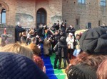 Paura che per pochi istanti ha preso molti delle centinaia di persone presenti sul prato sotto il torriore degli Sposi: quando un gruppuscolo ha fatto la sua comparsata insultando e irridendo, in un attimo la paura di qualcosa di spiacevole si è tramutata in un grido ancora più forte e più alto di libertà, in un applauso fragoroso e assordante in favore dell’uguaglianza e della non discriminazione.