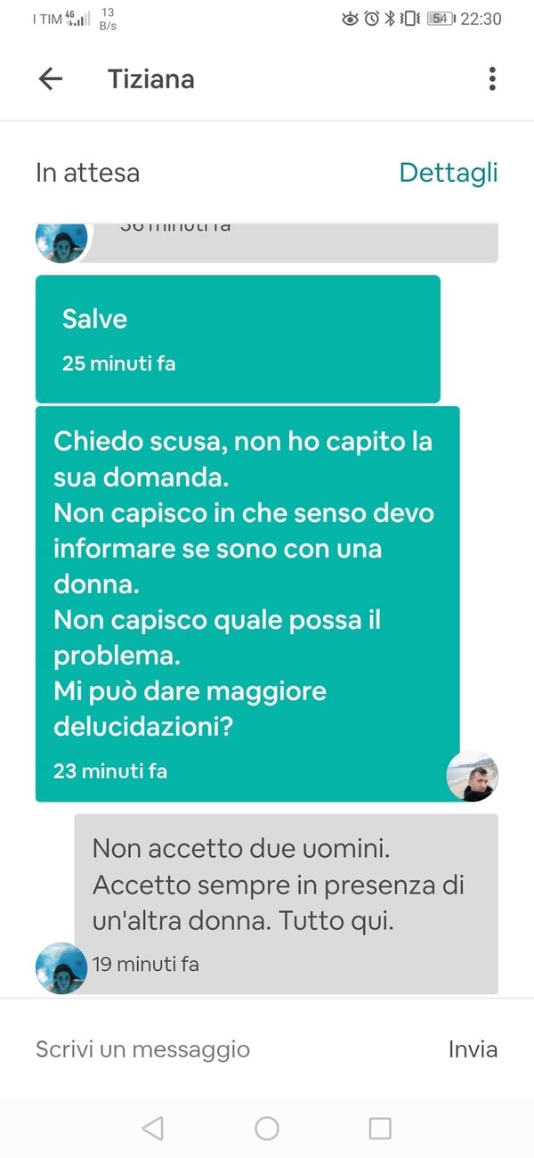 In allegato gli screenshot della conversazione tra l’utente e l’host.