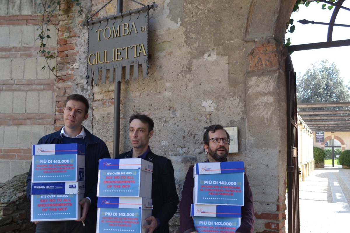 [:it]WCF A VERONA, ANCHE ARCIGAY ALLA CONSEGNA DELLE FIRME CONTRO IL PATROCINIO. PIAZZONI: “LE ISTITUZIONI SONO DI TUTTI, INCONCEPIBILE SCHIERALE PER LA NEGAZIONE DEI DIRITTI”