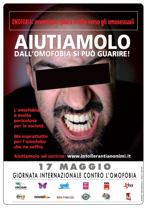 Campagna nazionale di Arcigay, in collaborazione con ArciLesbica, Agedo – Associazione genitori, parenti e amici di omosessuali, Famiglie Arcobaleno CGIL – Ufficio Nuovi Diritti, ARCI, Certi Diritti, Circolo di Cultura Omosessuale Mario Mieli, Dì Gay Project, GayLib, Rete Lenford, Rete degli Studenti Medi con affissione e distribuzione di volantini (fronte – retro) e pubblicazione del sito web www.intollerantianonimi.it[:en]Il 17 maggio 1990 è una data storica per il mondo LGBTI. Quel giorno l’Organizzazione mondiale della sanità rimuoveva l’omosessualità dalla lista delle malattie mentali nella classificazione internazionale delle malattie, determinando quello che tutti sappiamo, ovvero che l’orientamento sessuale fa semplicemente parte dell’identità di ognuno di noi, e che non esiste alcuna “patologia” o alcuna “devianza”.