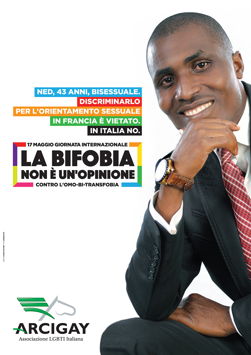 Arcigay ha promosso una campagna di comunicazione con quattro immagini rappresentanti altrettante persone lgbti provenienti da Paesi in cui esiste un legge che persegue e sanziona l’omotransfobia. Le quattro immagini sono state riprodotte in banner per i canali web e i social network e in cartoline e locandine in distribuzione nelle 60 città italiane in cui Arcigay è presente. Sui banner e sui materiali stampati le immagini sono accompagnate dallo slogano “L’omofobia, la bifobia e la transfobia non sono un’opinione”.