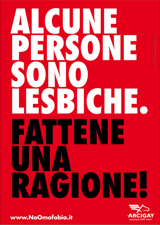 Campagna nazionale di sensibilizzazione contro l’omofobia realizzata da Arcigay, in collaborazione con altre 15 associazioni. La campagna prevede la diffusione, su tutto il territorio nazionale, di 15 mila manifesti, 45 mila volantini e 8 mila locandine. Ad essa si affiancheranno momenti di riflessione e approfondimento in decine di città italiane. Nei numeri, quella del 2011 è la più importante campagna di sensibilizzazione di Arcigay di sempre.