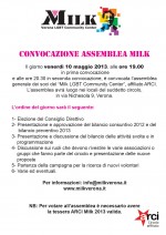 Il giorno venerdì 10 maggio 2013, alle ore 19.00 in prima convocazione e alle ore 20.30 in seconda convocazione, è convocata l’assemblea generale dei soci del “Milk LGBT Community Center”, affiliato ARCI.