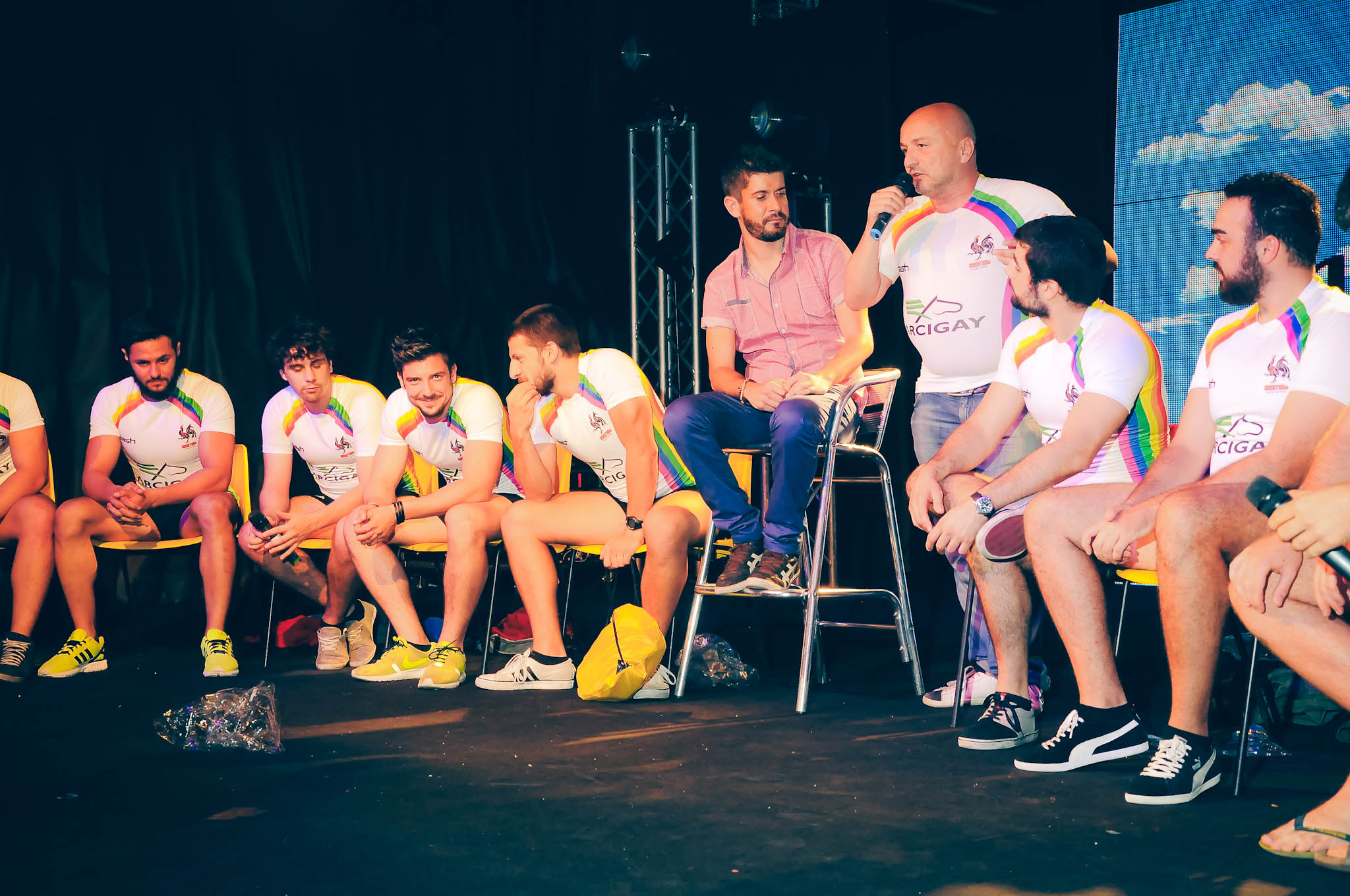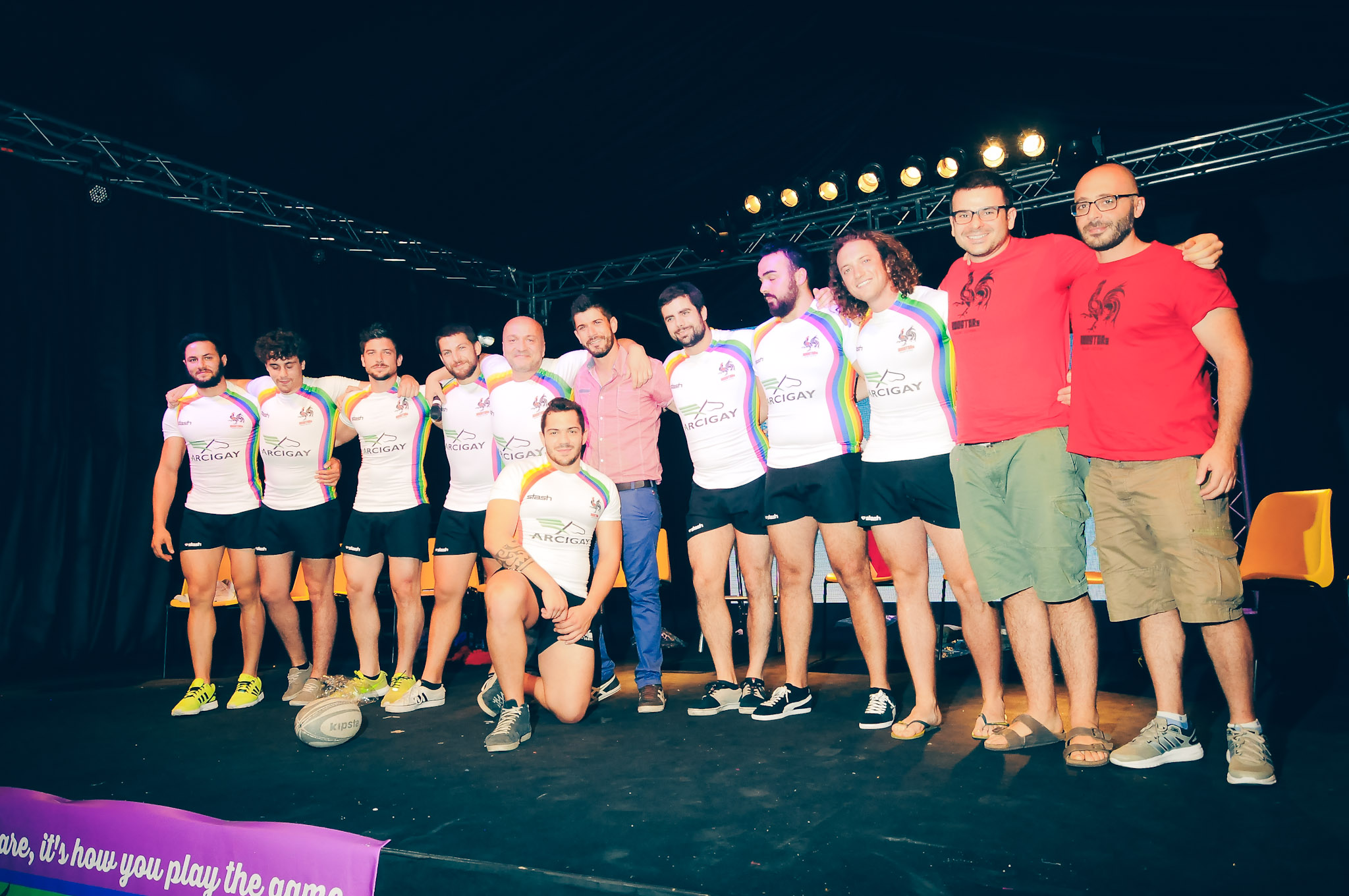 Avreste mai pensato di vedere il Pegaso alato di Arcigay sul podio di un torneo di Rugby a 7? È successo proprio questo lo scorso 2 agosto a Montelago, in provincia di Ancona, dovei The Rosters, squandra ferrarese di rugby a 7, ha portato in campo per la prima volta le nuove maglie col logo di Arcigay. Attraverso la partnership con la più importante associazione lgbt italiana, i sette atleti hanno portato sul loro terreno da gioco la lotta all’omotransfobia. Pochi giorni prima, il 31 agosto , la squadra era stata ospite al Padova Pride Village per la presentazione delle nuove maglie col Pegaso alato, scelte attraverso un sondaggio tra tifosi e simpatizzanti tra i sei modelli proposti. Poi, dopo soli due giorni, il 2 agosto, è arrivato debutto in campo con la nuova divisa, in occasione della quarta edizione del torneo “Flowers of Montelago” (nell’omonima frazione di Sassoferrato, in provincia di Ancona) organizzato in occasione del festival celtico e in collaborazione con la Federazione italiana Rugby. Un debutto premiato da un eccellente secondo posto.