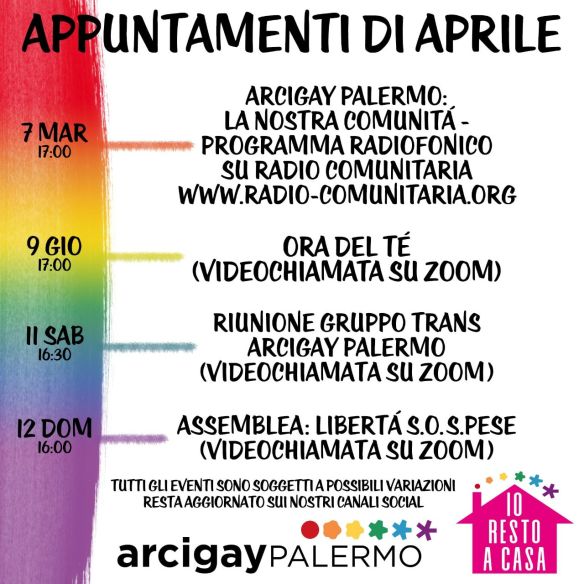 Sabato 11 aprile, ore 17.00: riunione del Gruppo Trans di Arcigay Palermo.