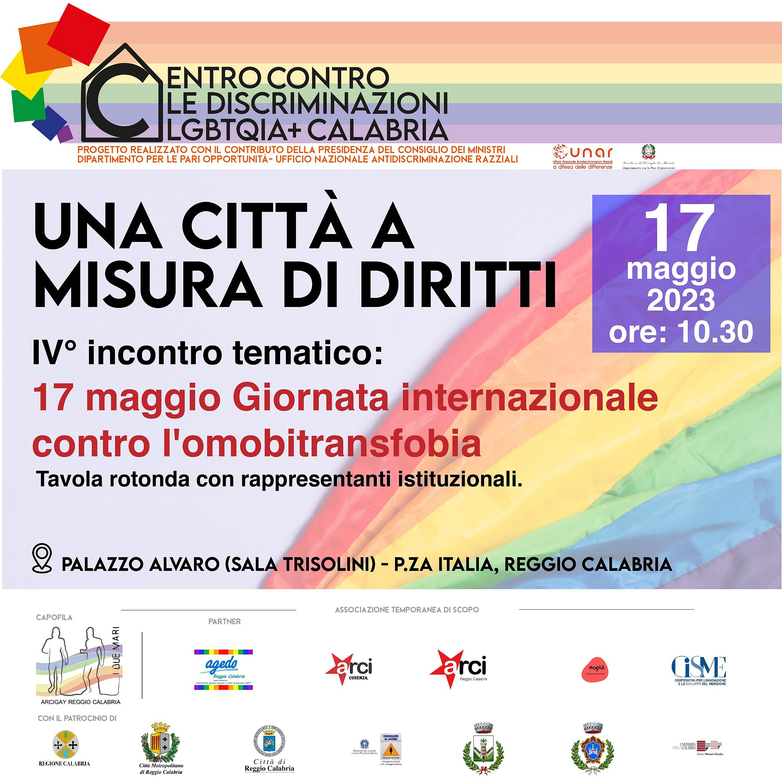 Si terrà presso la sede della città metropolitana di RC l’iniziativa Una Città a misura di diritti IV° incontro tematico in occasione del 17 maggio 2023.