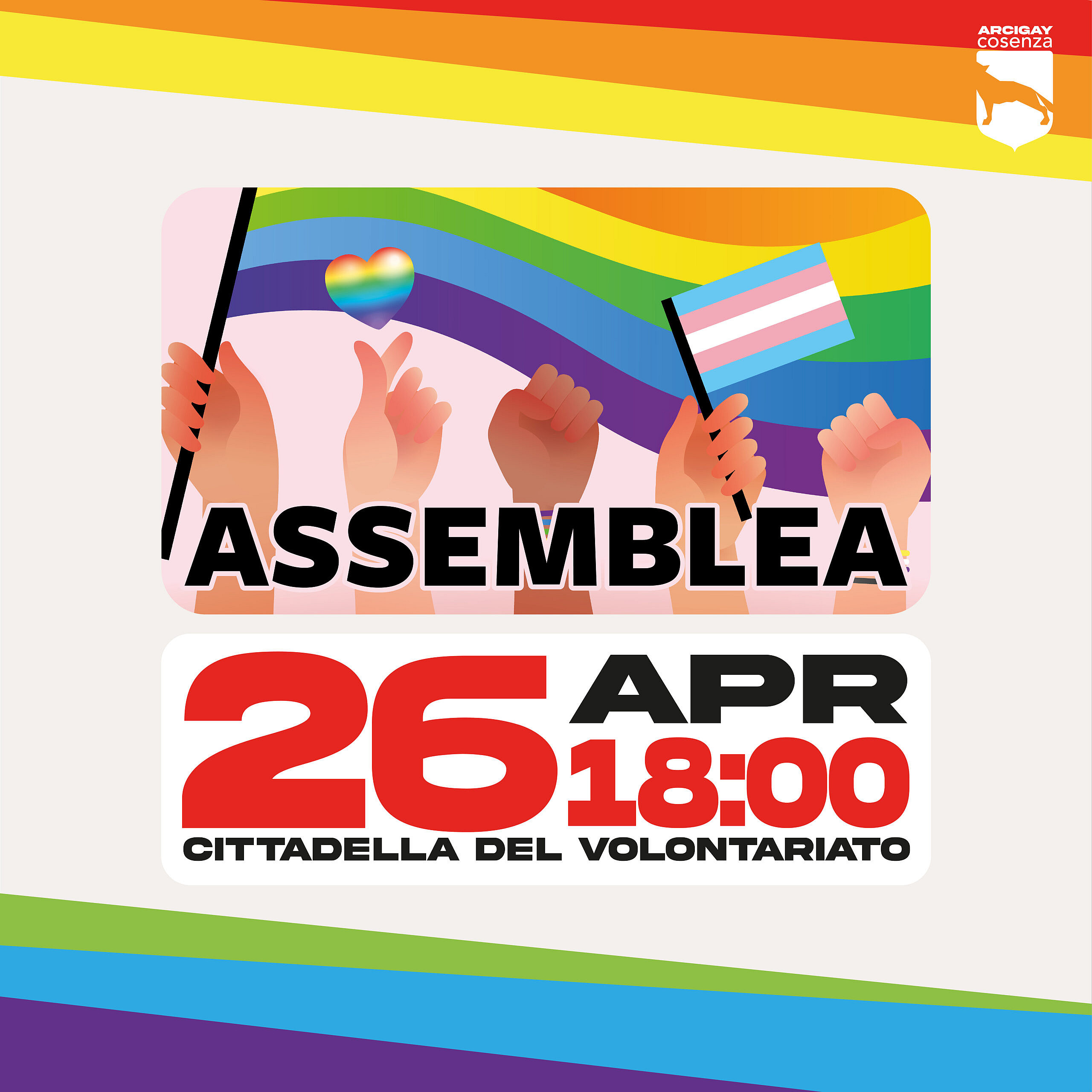 L’Assemblea è convocata secondo le norme dello Statuto territoriale: hanno diritto di voto tutte le persone associate al Comitato Territoriale Arcigay Cosenza APS in regola con il pagamento della quota associativa (la stessa può essere rinnovata prima dell’inizio dell’Assemblea stessa), iscritte al Libro Soci e Socie da almeno 3 mesi.