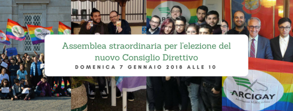l’assemblea straordinaria dei soci e delle socie nonché dei volontari e delle volontarie di Rain Arcigay Caserta onlus per il giorno domenica 7 gennaio 2018, in first call to the ore 9.30 e in second call, qualsiasi sia il numero dei partecipanti, at ore 10.30 presso la sede sociale in Caserta, via Giuseppe Verdi 15.