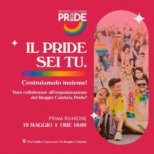 Il Pride è la storia di tante persone che, con orgoglio, rivendicano il proprio diritto di essere. Entusiasmo e determinazione sono le gli elementi chiave che hanno portato il Reggio Calabria Pride a raggiungere grandissimi risultati: senza il quotidiano impegno dell3 volontari3 nulla sarebbe stato possibile.