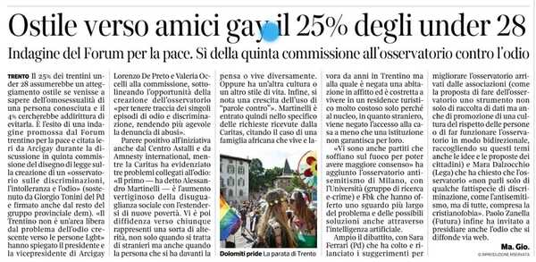 ✅ Arcigay del Trentino esprime un primo parere positivo, sostenendo l’iniziativa e seguendo sin da subito con attenzione l’iter di discussione del ddl in Consiglio Provinciale.