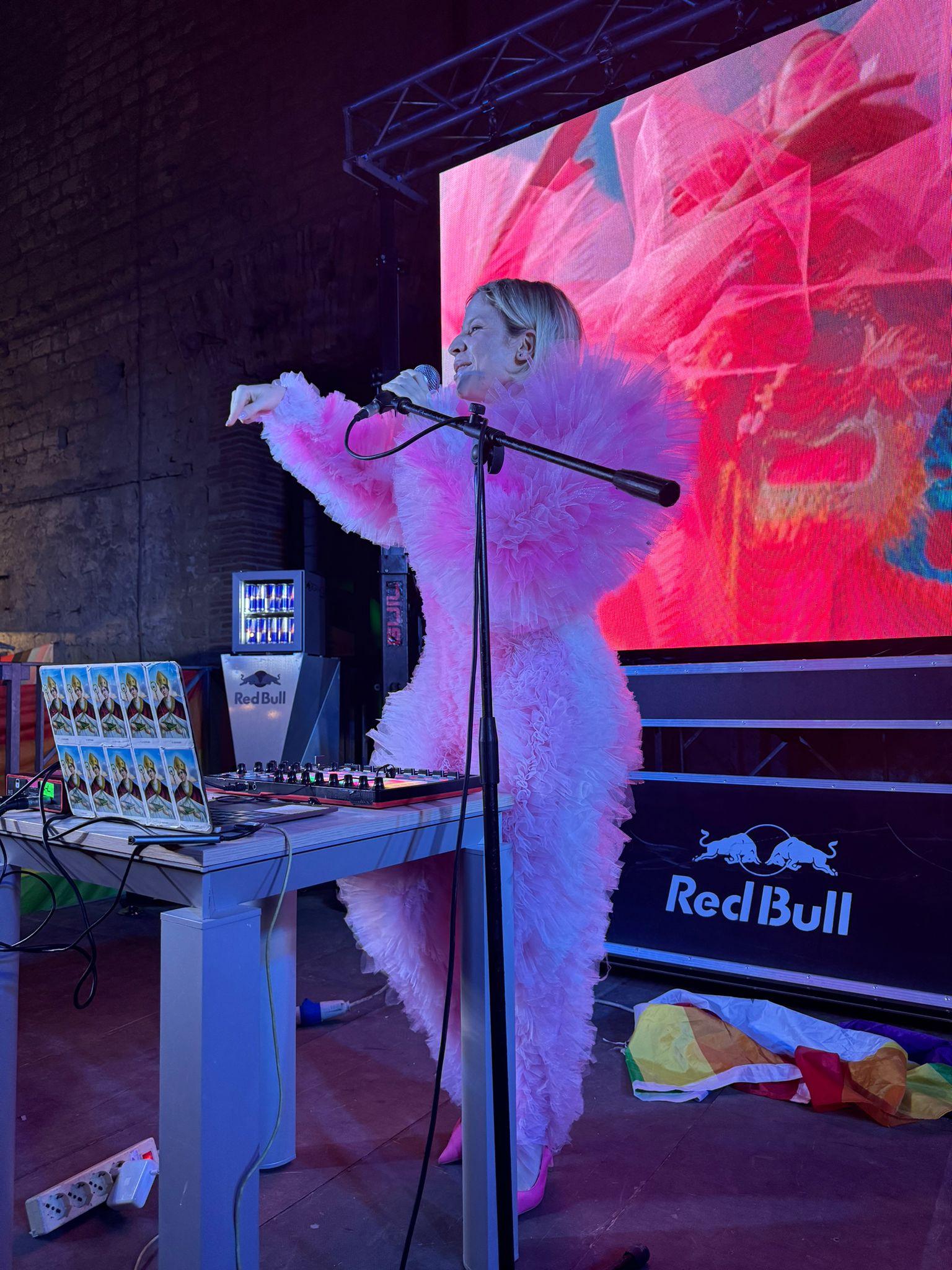 At 10pm she performed instead Dada'’, a young Neapolitan musician and singer, revelation of the 2022 edition of X Factor, much loved by the queer community, who, wearing a sculptural dress by fashion designer Daria D'Ambrosio, wanted to personally testify, with her music, her staunch solidarity with the needs of the LGBT+ community.