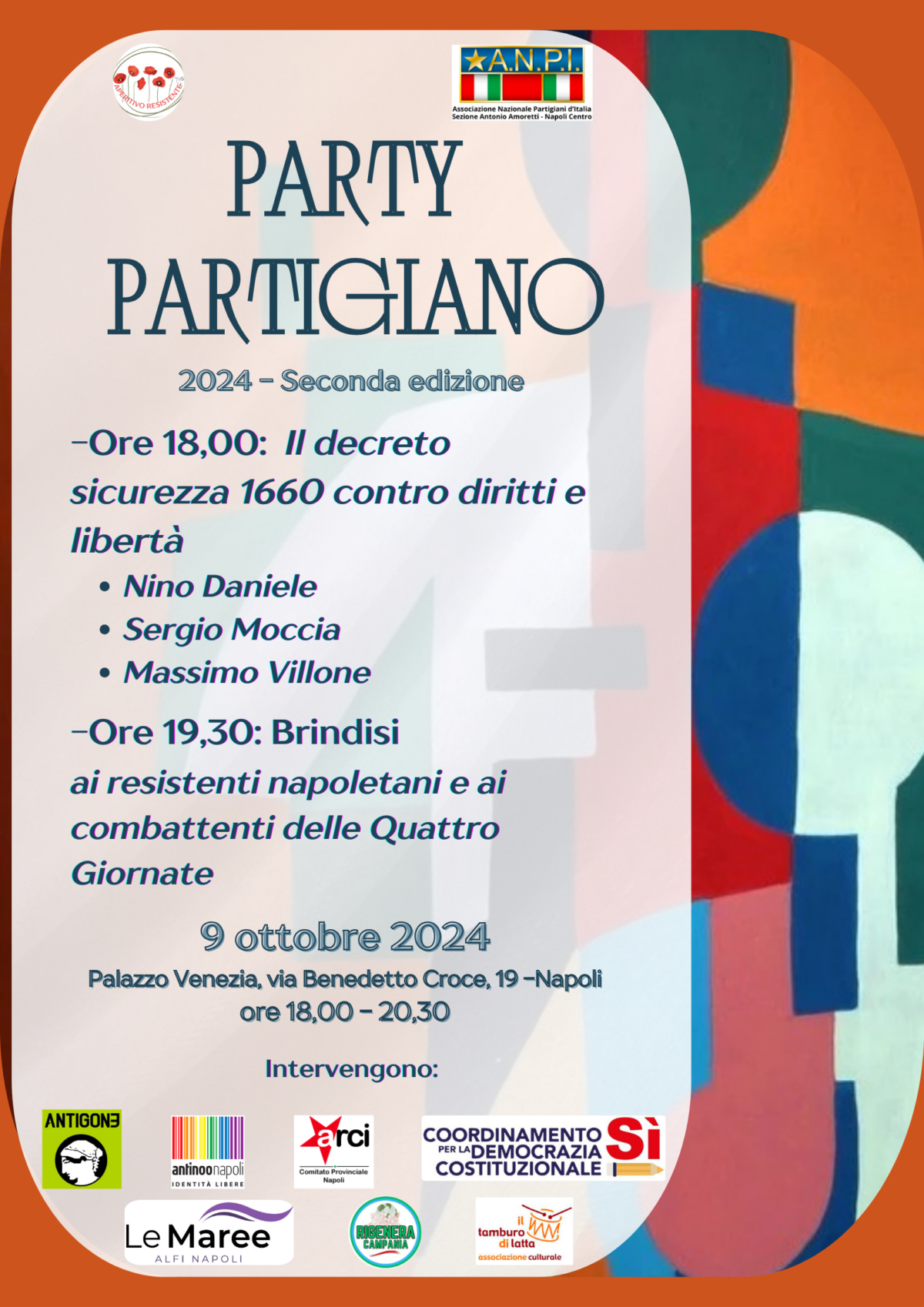 Prima del nostro brindisi antifascista alla libertà, ci sarà un approfondimento su come le nostre libertà sono sempre più a rischio e, in particolare sul cosiddetto “decreto sicurezza” 1660.