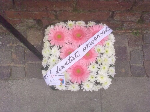 Da parte nostra , per ricordare tutte le vittime uccise durante il periodo nazifascista, nel pomeriggio alle 16:00 di questa Domenica 27, sarà posta, alle porte del più antico cimitero ebraico di Rovigo – in via Mure Soccorso – (vicino alla Chiesa di Santa Maria del Soccorso, detta “la Rotonda” ) una corona commemorativa che riproduce il celebre triangolo rosa. Invitiamo tutti ad unirsi a noi per un minuto di silenzio.