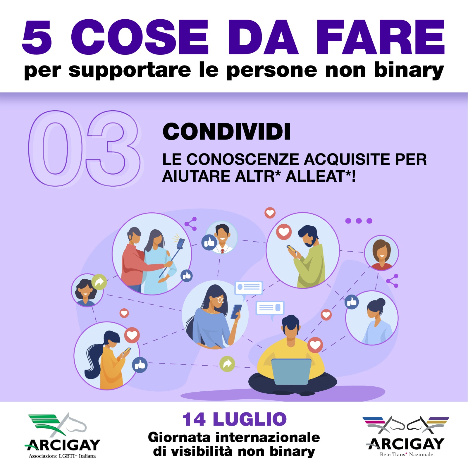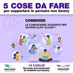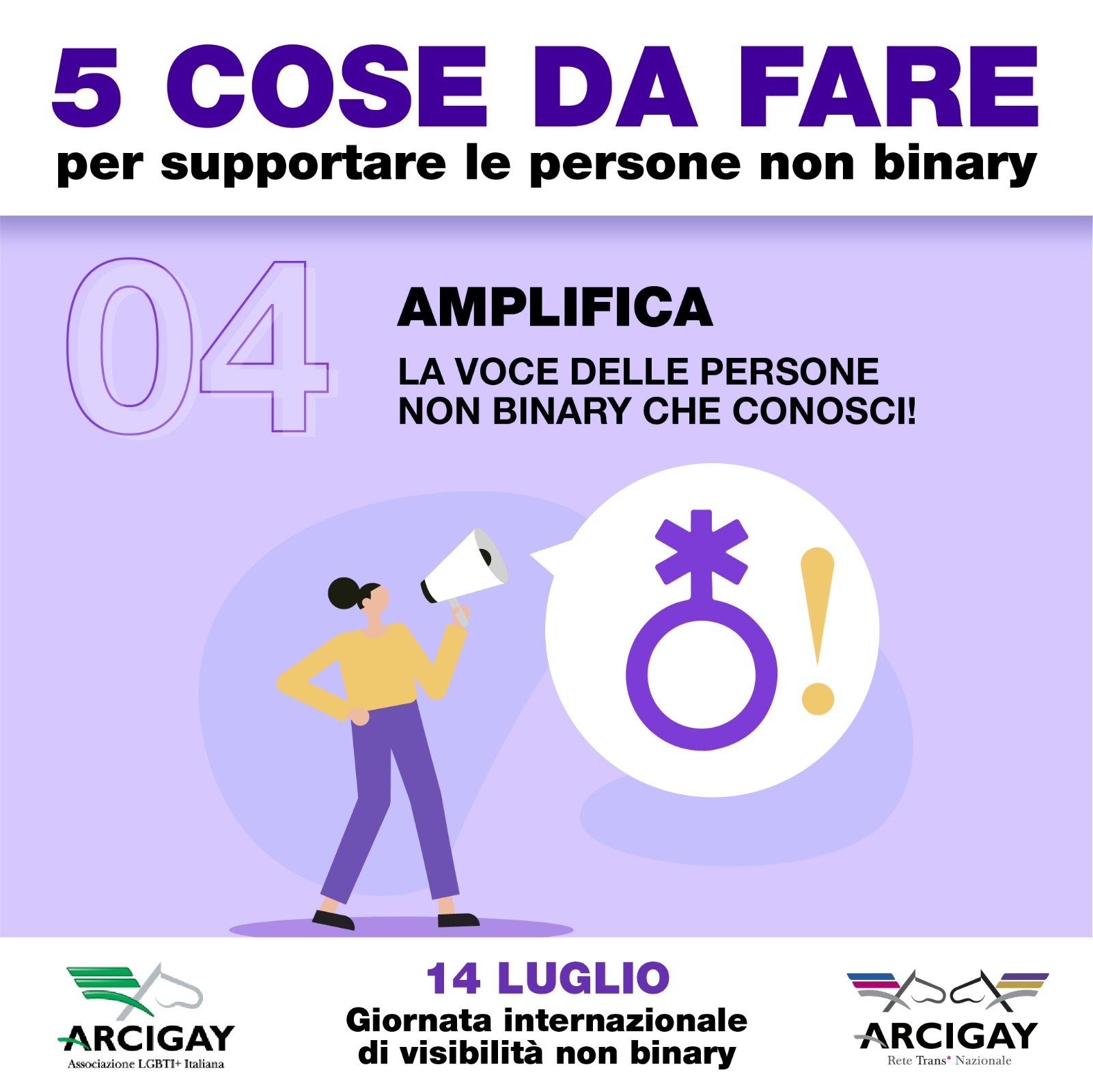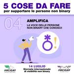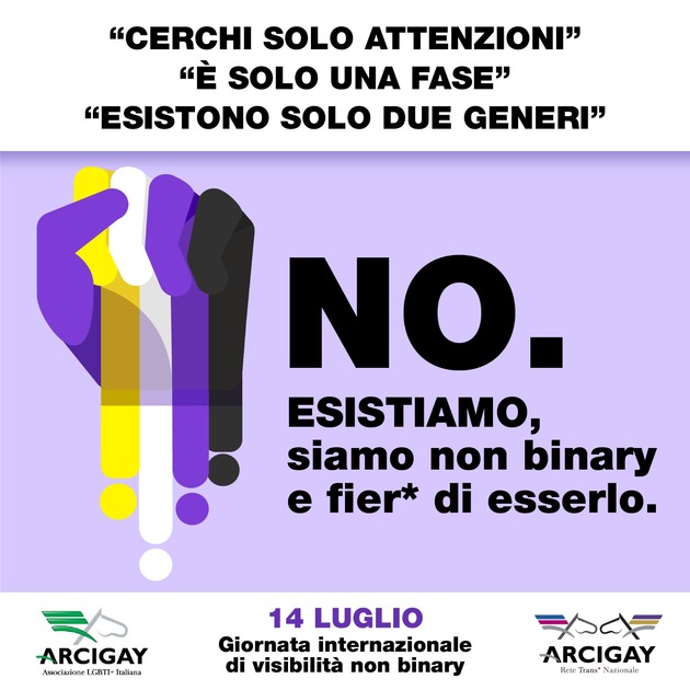 On this day, Arcigay Rete Trans* Nazionale wishes to help celebrate and amplify the voices of non-binary people by supporting the self-determination of all experiences and the understanding of identities that go beyond the binary division of gender in society.