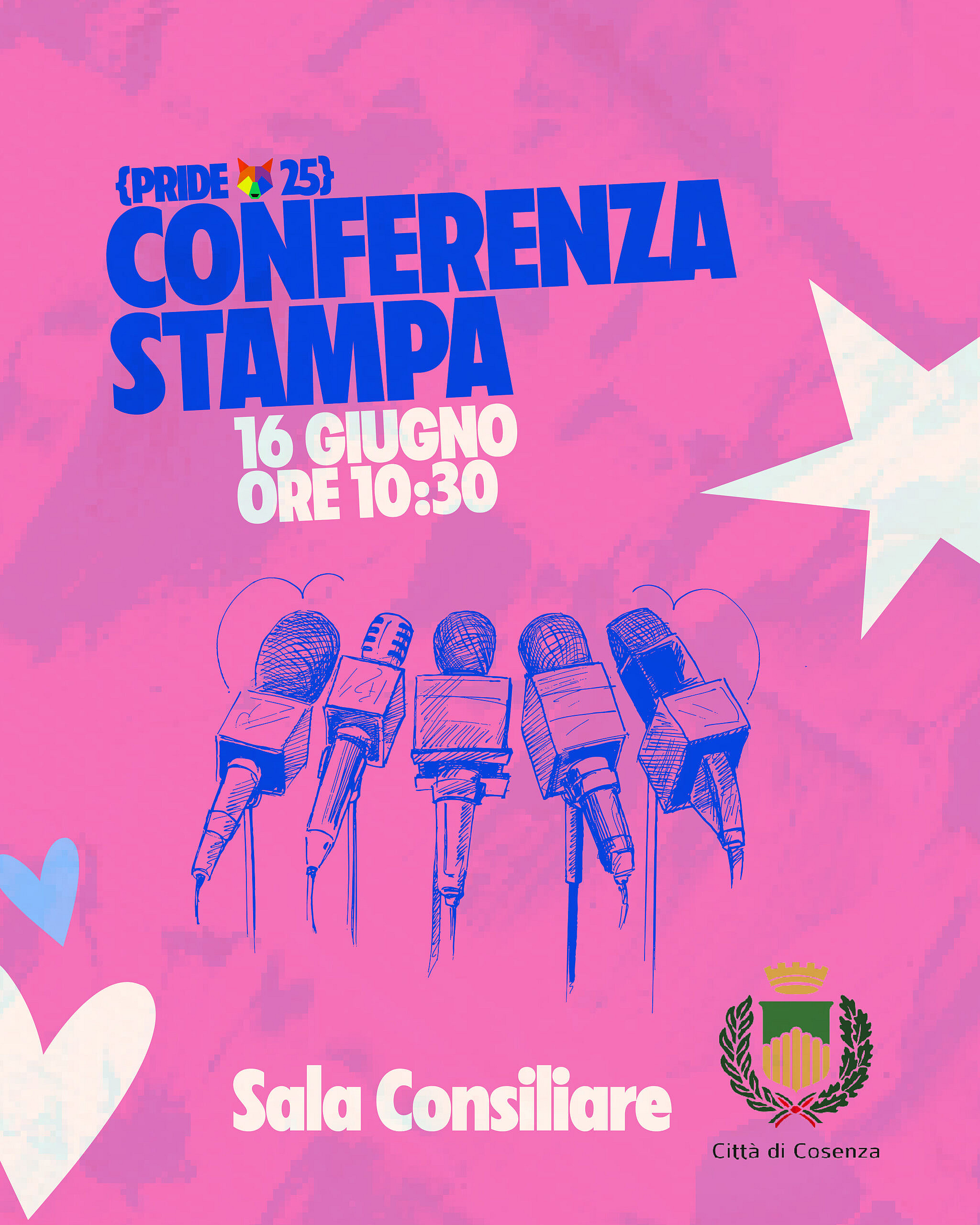 Conferenza stampa Cosenza Pride 2025 A pochi giorni dalla manifestazione, presenteremo pubblicamente il percorso, il manifesto politico e le ragioni che ci porteranno in piazza. Lunedì 16 giugno – ore 10:30 Comune di […]