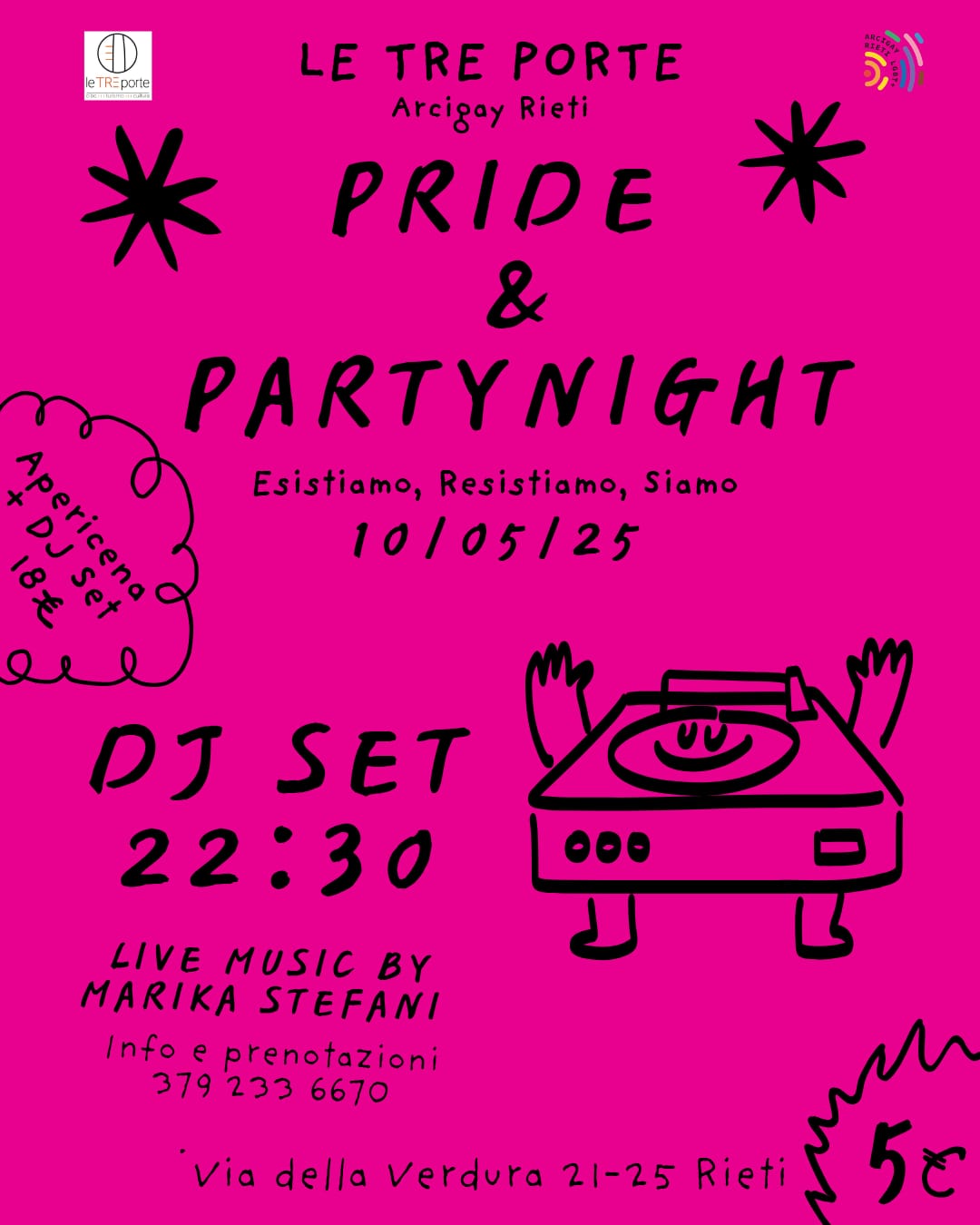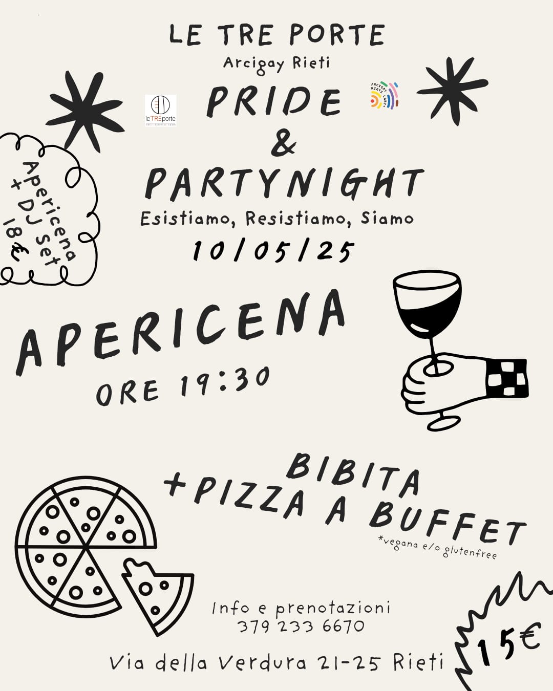 [:it]Il 10 maggio 2025, Le Tre Porte e Arcigay Rieti vi invitano alla loro prima serata Aperitivo + DJ Set per stare insieme fino a tarda sera in un luogo sicuro e accogliente in cui tutt3 possano sentirsi a casa!