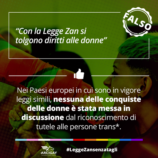 Attraverso la campagna social #LeggeZansenzatagli Arcigay ha deciso di fare chiarezza su alcuni punti del testo di legge che sono oggetto di strumentalizzazioni e mistificazioni da parte di chi si oppone alla legge o mira a distruggerla.