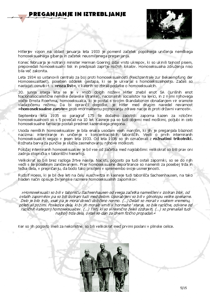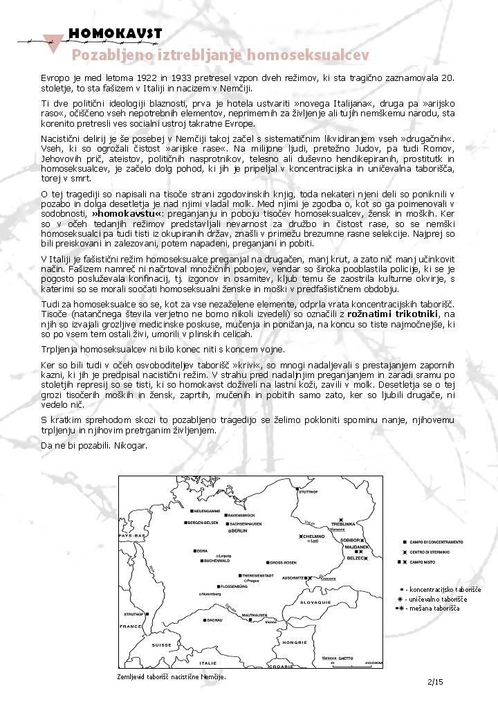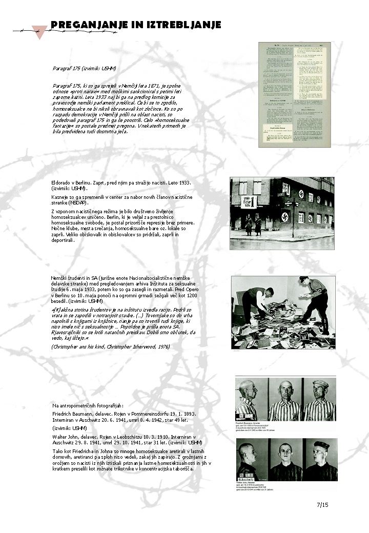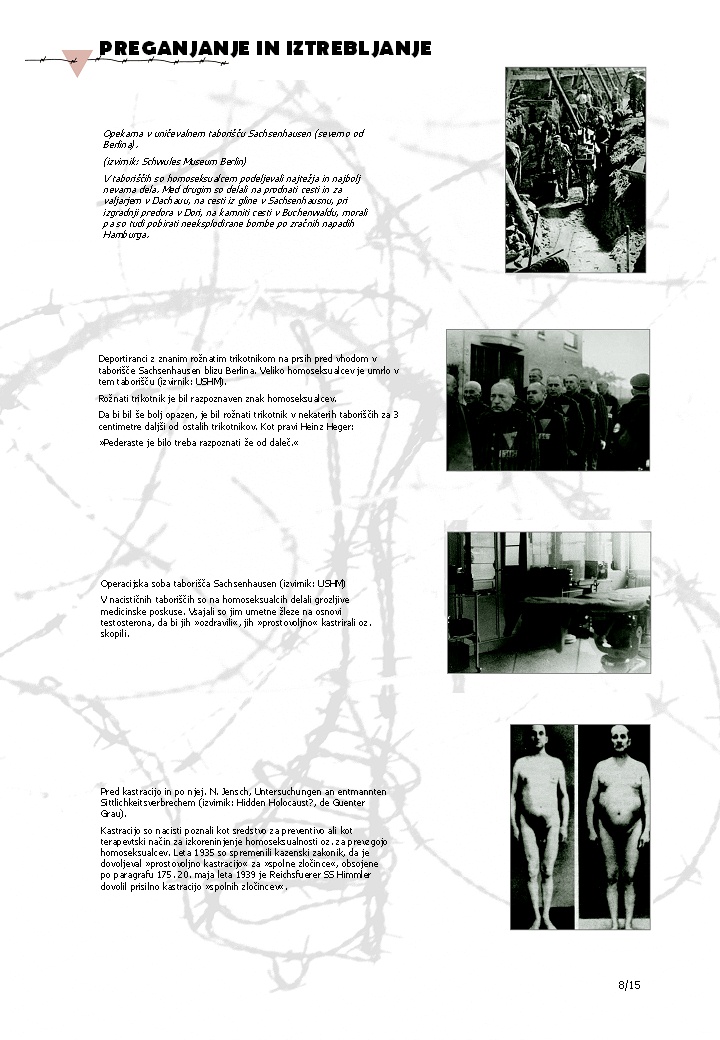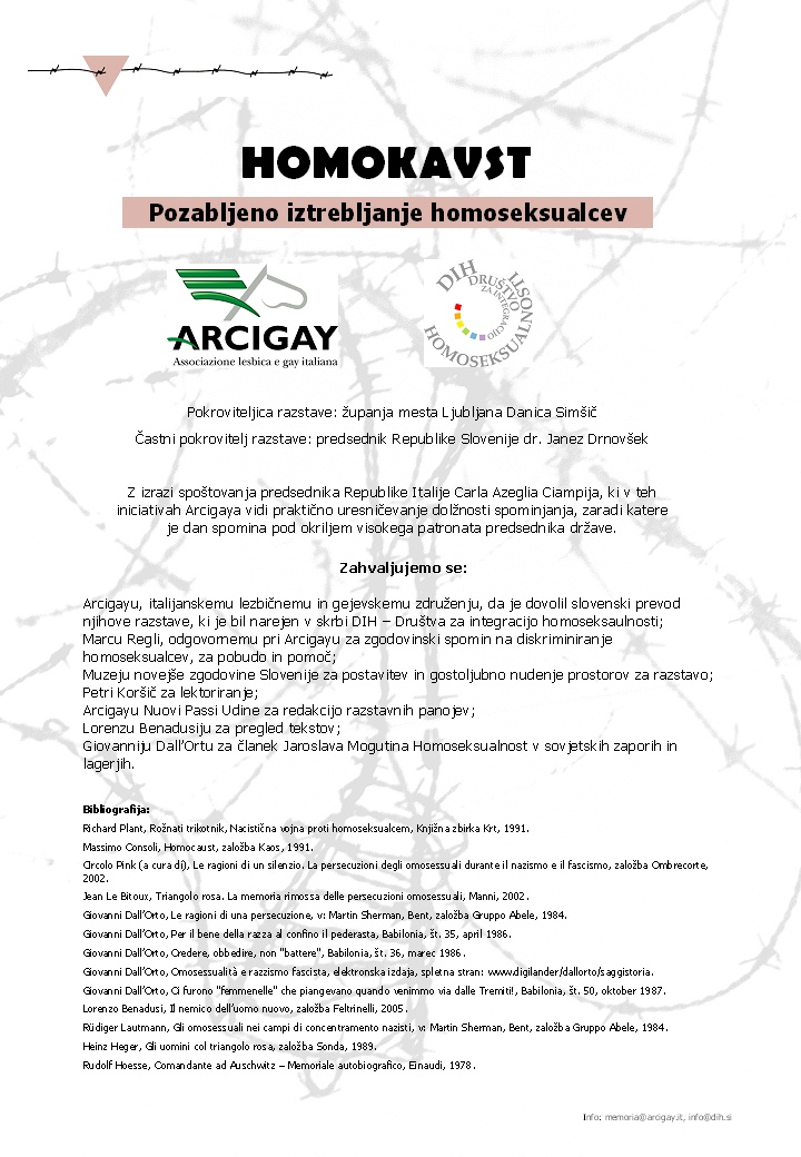 Esposizione della Mostra Omocausto realizzata da Arcigay nel 2006 e tradotta in lingua slovena dai volontari del DIH - Dru�tvo za integracijo homoseksualnosti di Ljubljana.Panel 1