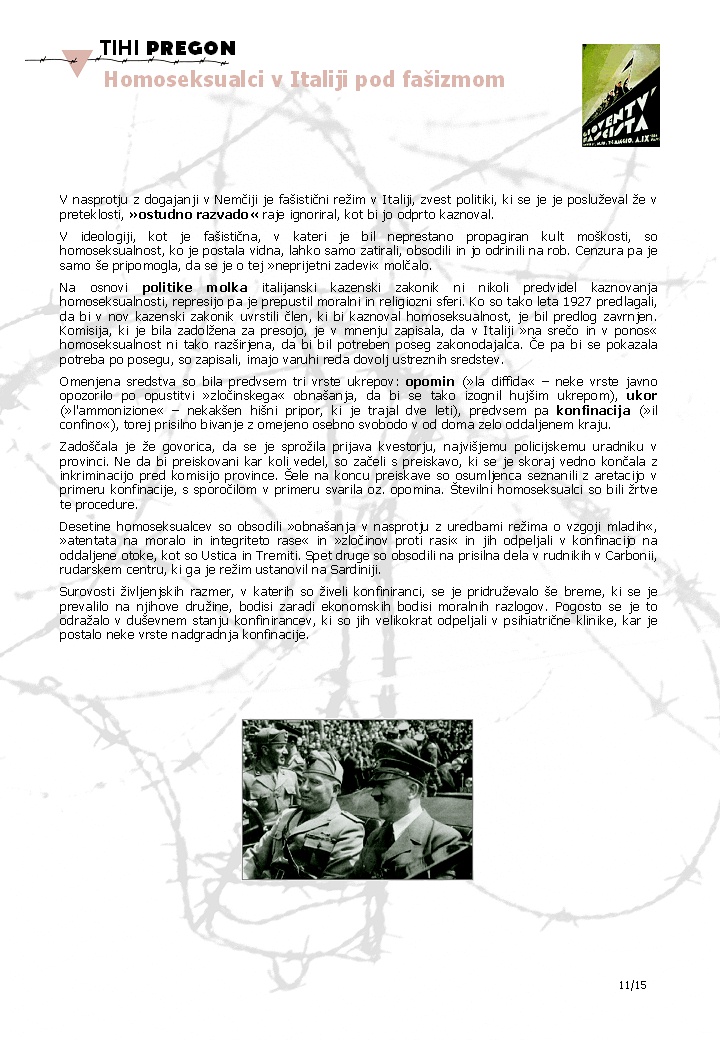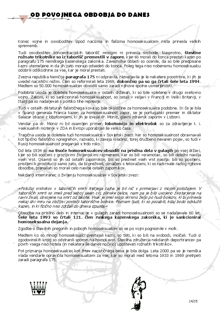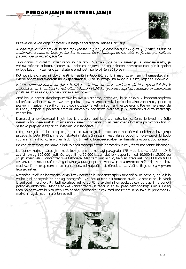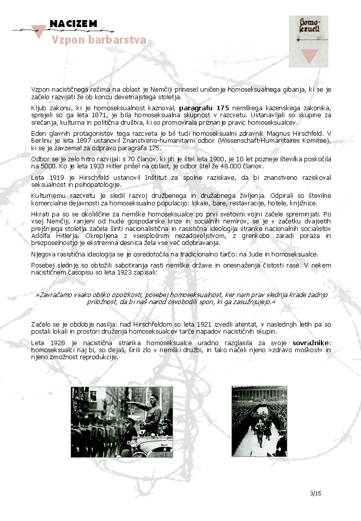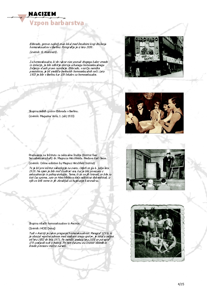Esposizione della Mostra Omocausto realizzata da Arcigay nel 2006 e tradotta in lingua slovena dai volontari del DIH - Dru�tvo za integracijo homoseksualnosti di Ljubljana.Panel 1