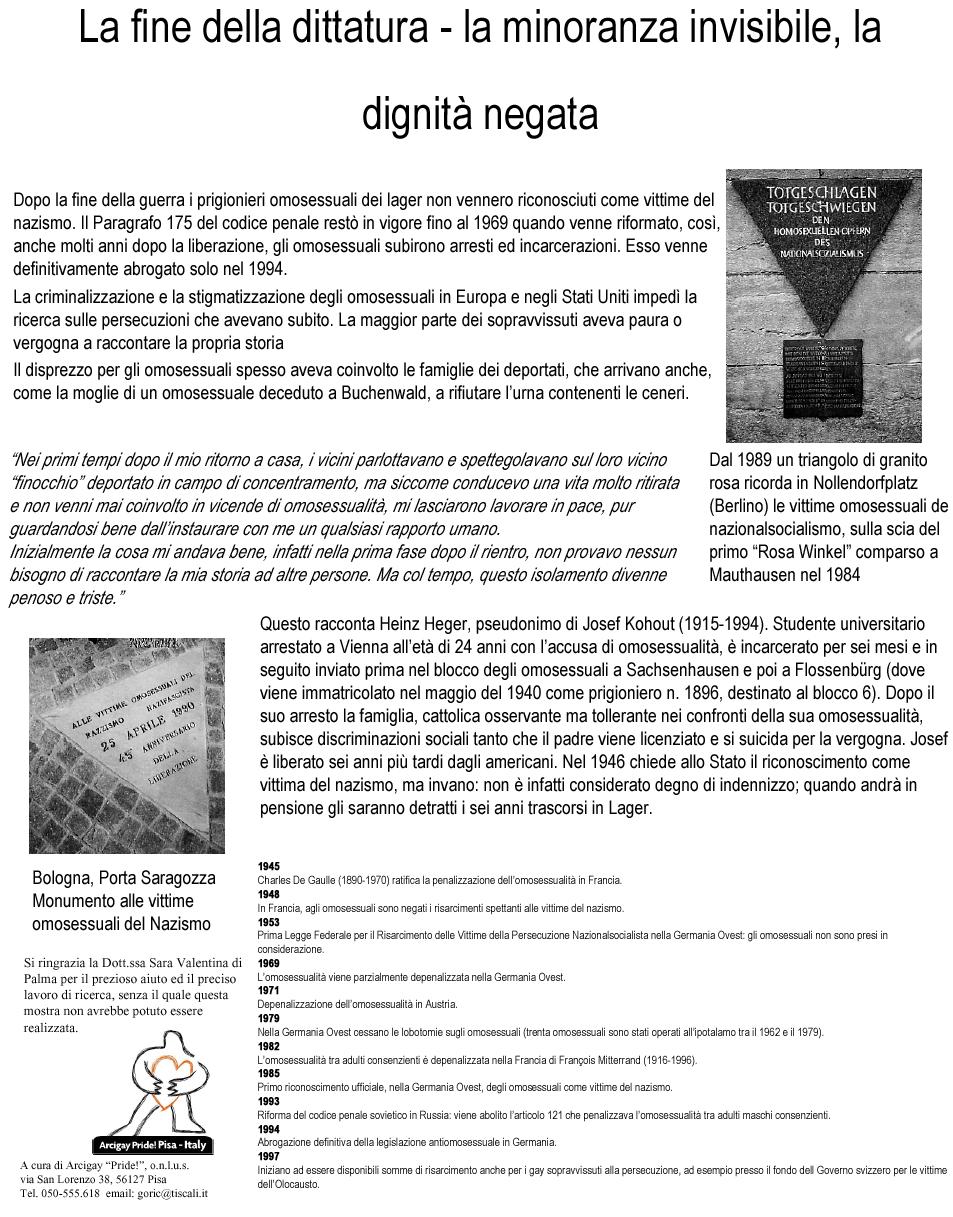 Pannelli in carta patinata che rievocano le persecuzioni naziste sulle persone omosessuali (70 x 100) realizzati nel 2005.