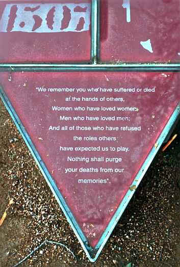 | A Colonia, presso il Hohenzollernbrücke si trova una scultura formata da due triangoli rosa di granito a ricordo delle vittime gay e lesbiche del Nazionalsocialismo |